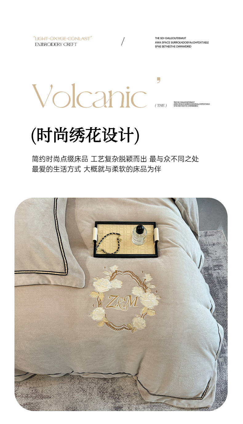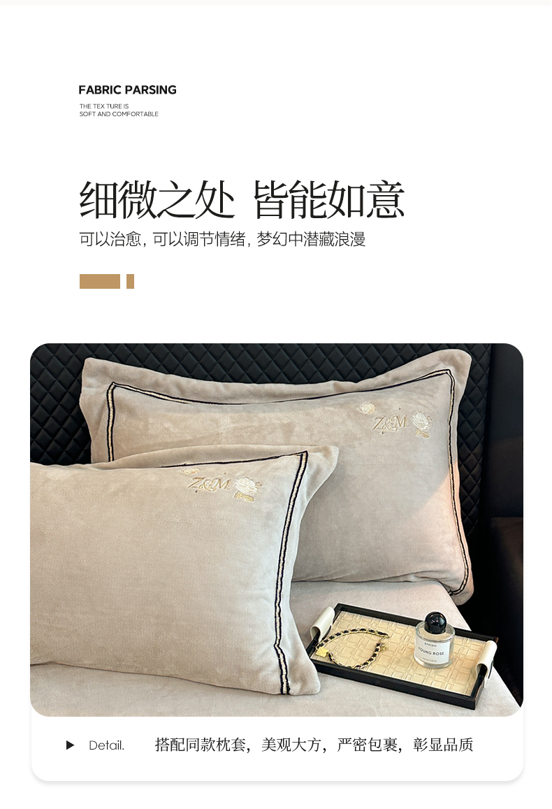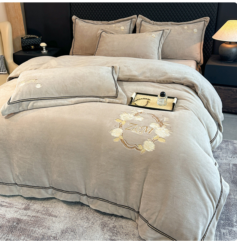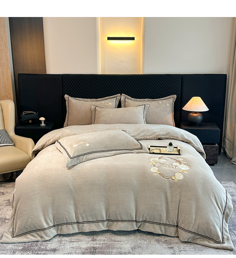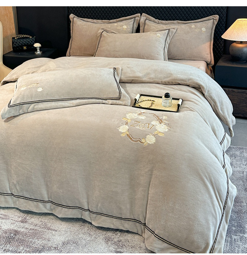 诺梵家纺 2025新款8.2斤牛奶绒刺绣四件套-布莱妮系列 布莱妮-米灰