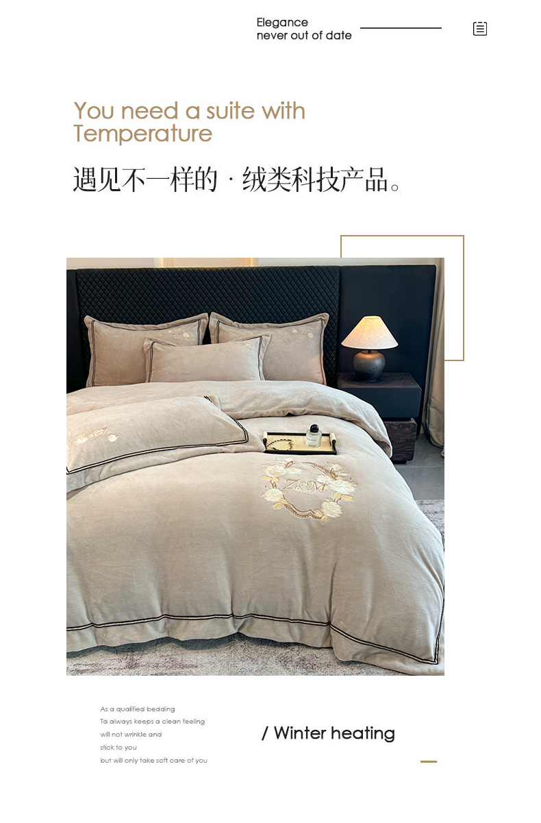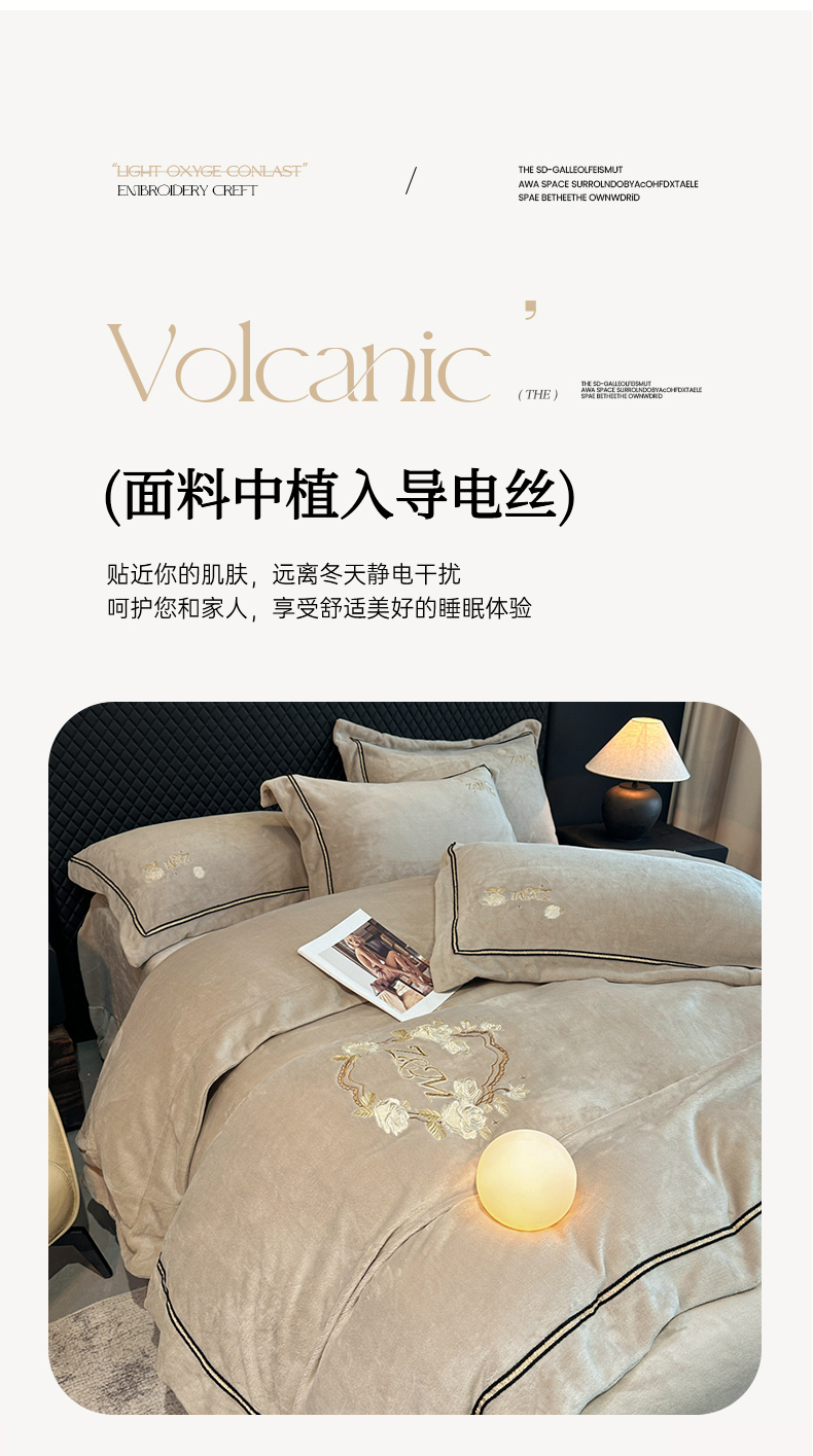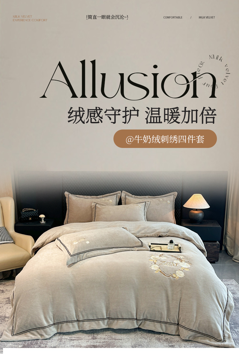 诺梵家纺 2025新款8.2斤牛奶绒刺绣四件套-布莱妮系列 布莱妮-米灰