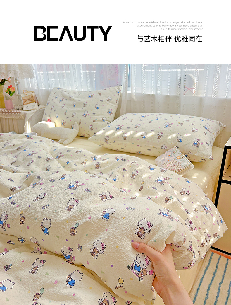 商品名称:(总)奈颜 2025新款三丽鸥爆款云感双层纱印花四件套学生宿舍三件套-含防伪吊牌-叠拍图