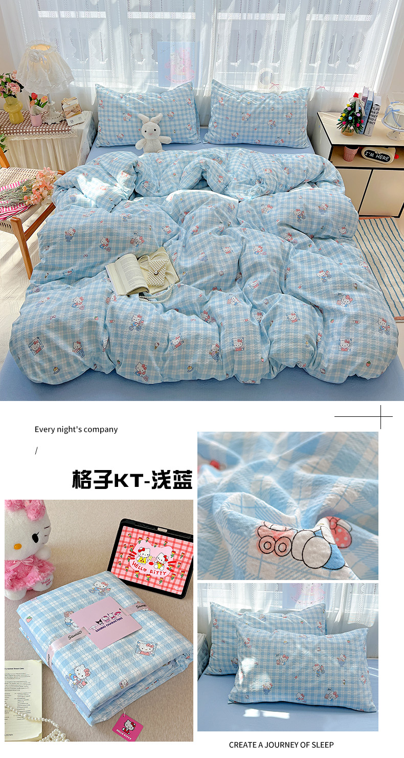 (总)奈颜 2025新款三丽鸥爆款云感双层纱印花四件套学生宿舍三件套-含防伪吊牌-叠拍图