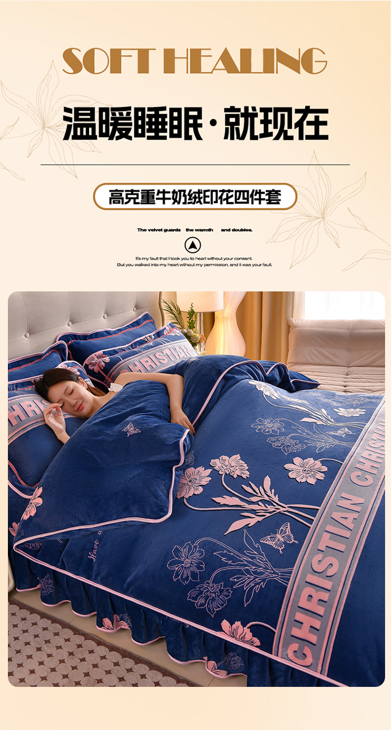 商品名称:佳一 2025新款高克重8-9斤 印花牛奶绒四件套 芳华