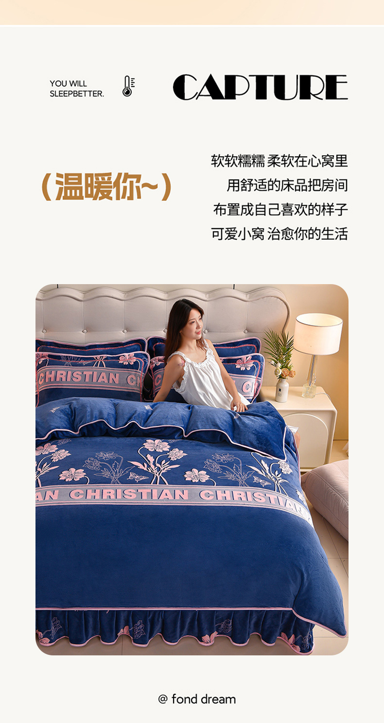 (总)佳一 2025新款赫本风牛奶绒床裙款花边四件套,布拉格,玫瑰花园,紫薇,栀子风情,樱花,印象巴黎,山茶花,米兰春天,陌上花开,罗曼花香,海棠粉,光影