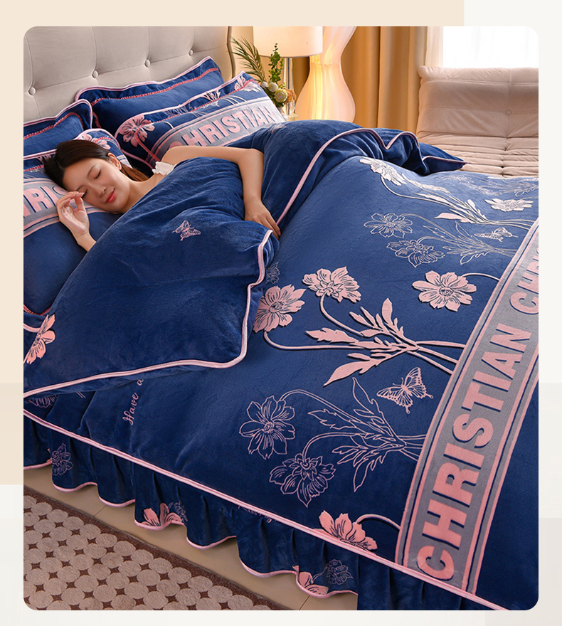 佳一 2025新款高克重8-9斤印花牛奶绒四件套 蝴蝶结,蝴蝶结