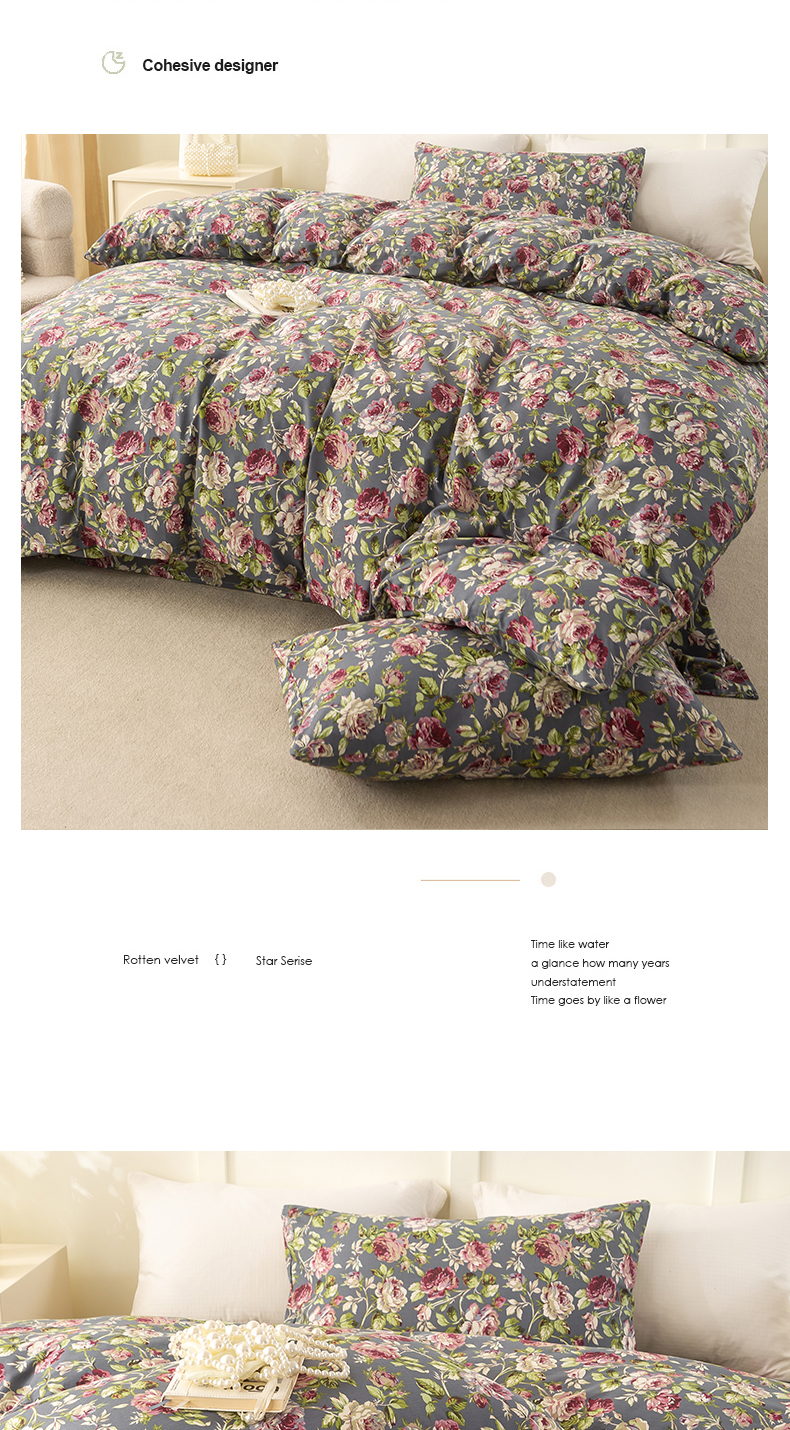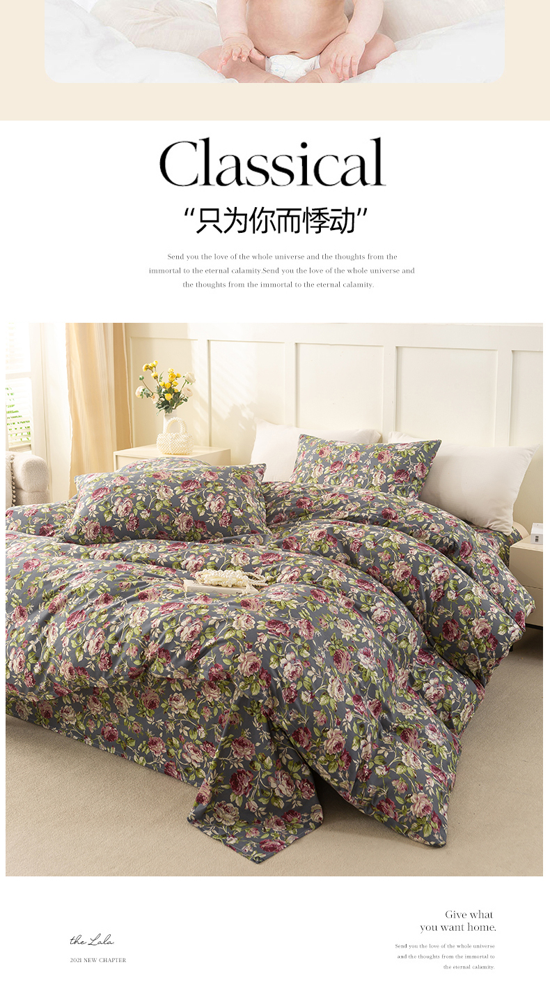 当前位置: 91家纺网 > 商品网购 > 床品套件 > 四件套 > 全棉普通四件套 > 锦鹭被业 2025新款复古全棉纯棉四件套 相约