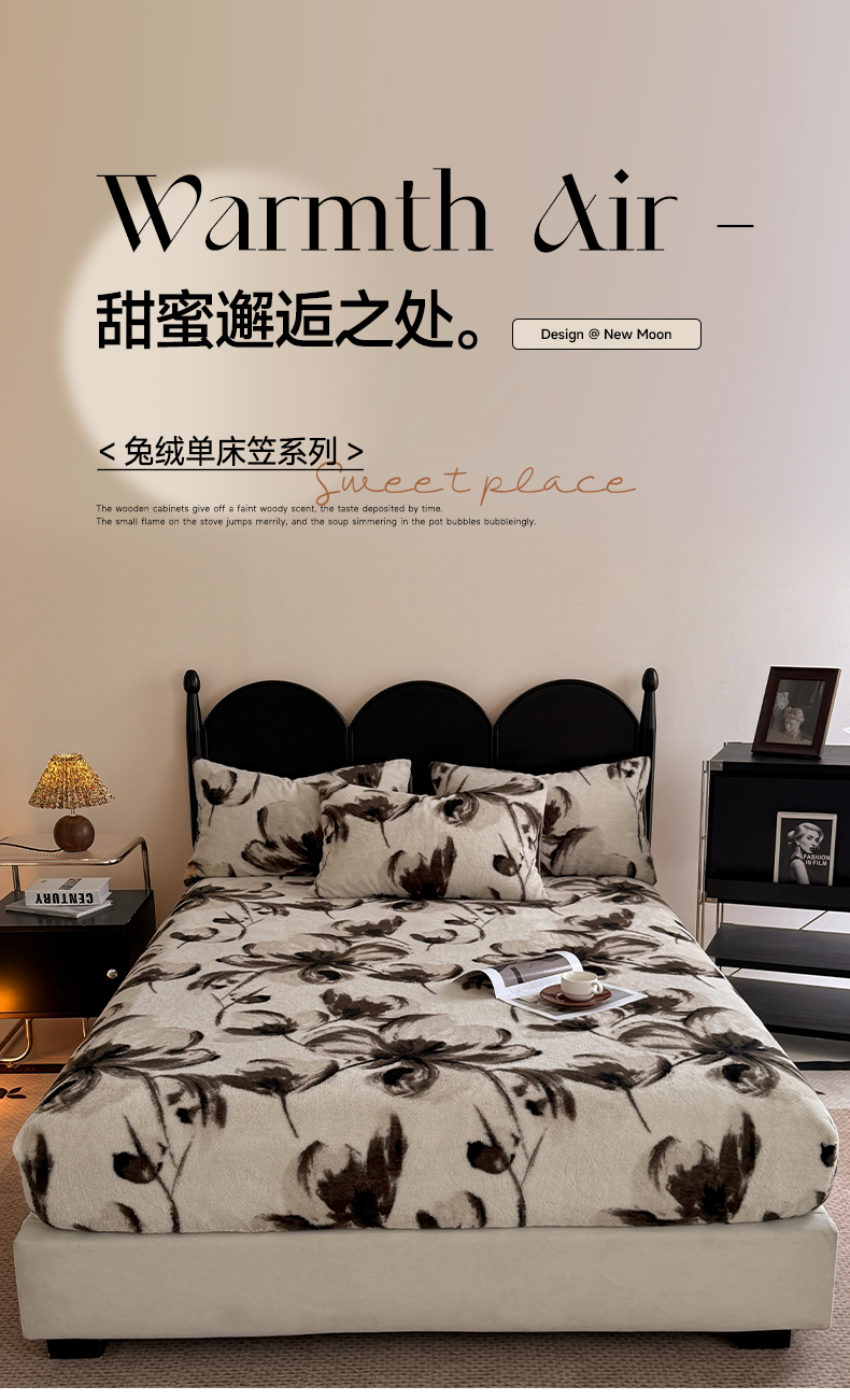 慕梵家居 2025新款兔绒床笠单品单床笠床笠单件 墨庭芳菲-米