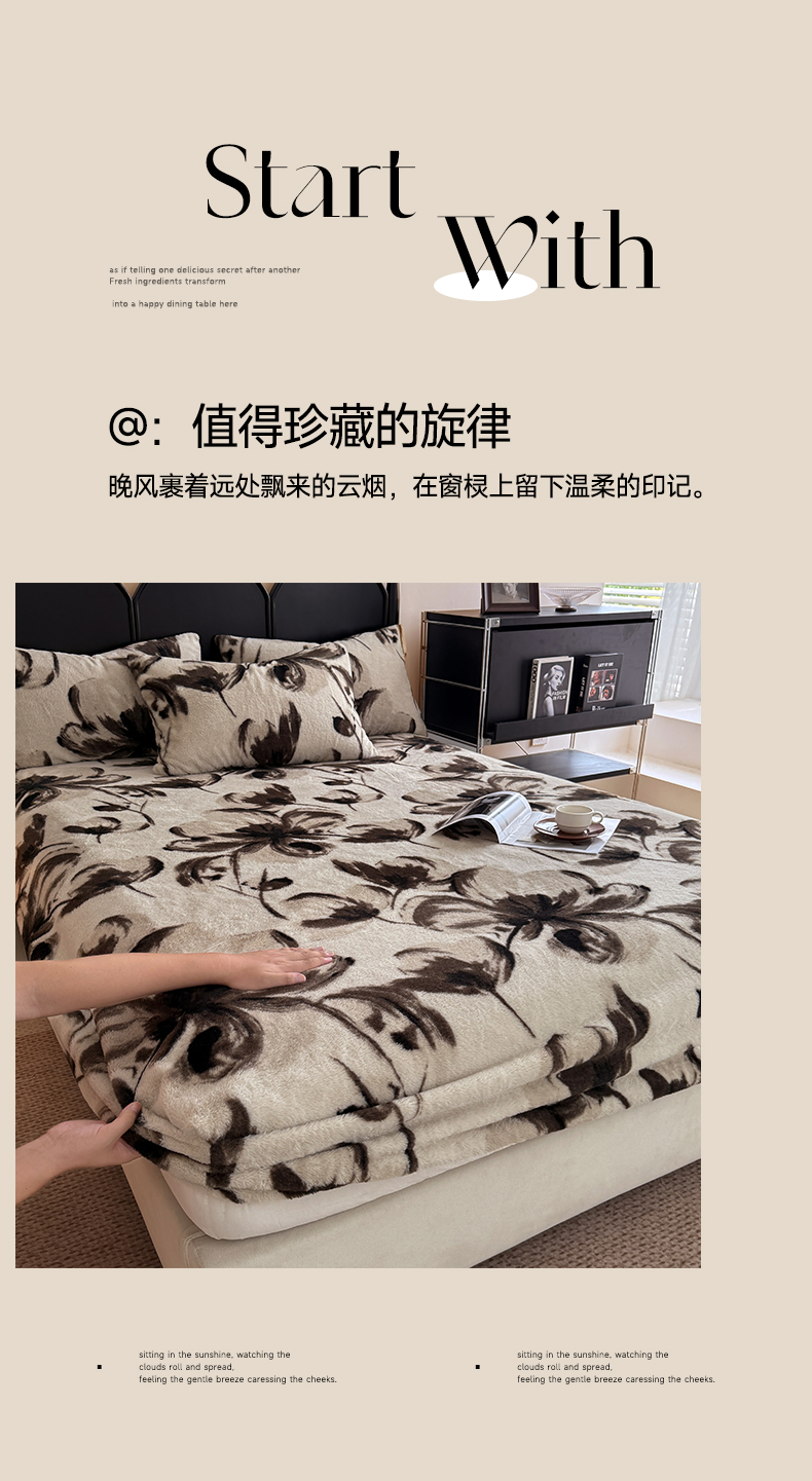 商品名称:慕梵家居 2025新款兔绒床笠单品单床笠床笠单件 墨庭芳菲-米
