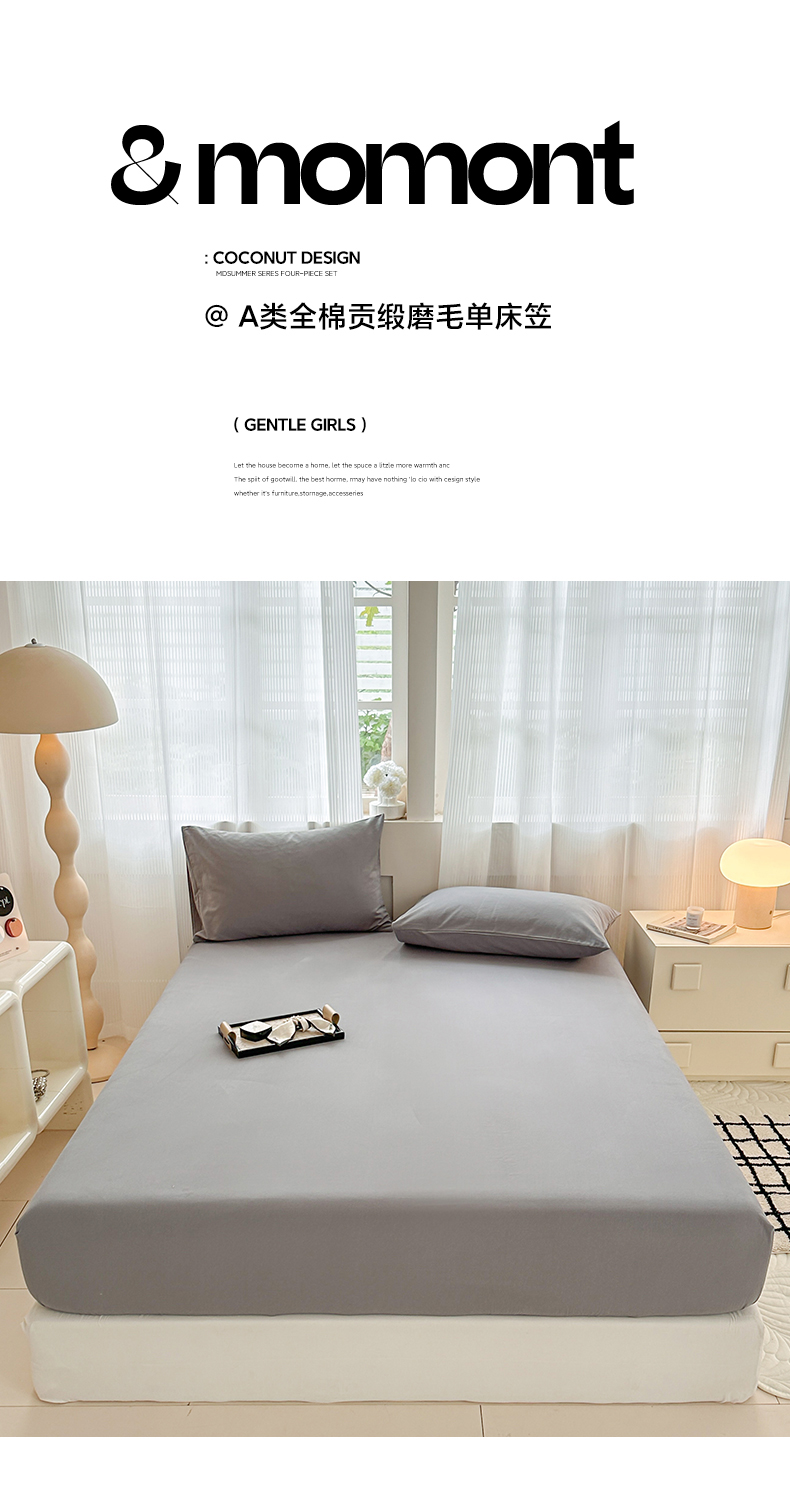 丽美人家纺 2025新款全棉纯棉磨毛单床笠 床笠单件 慕斯灰
