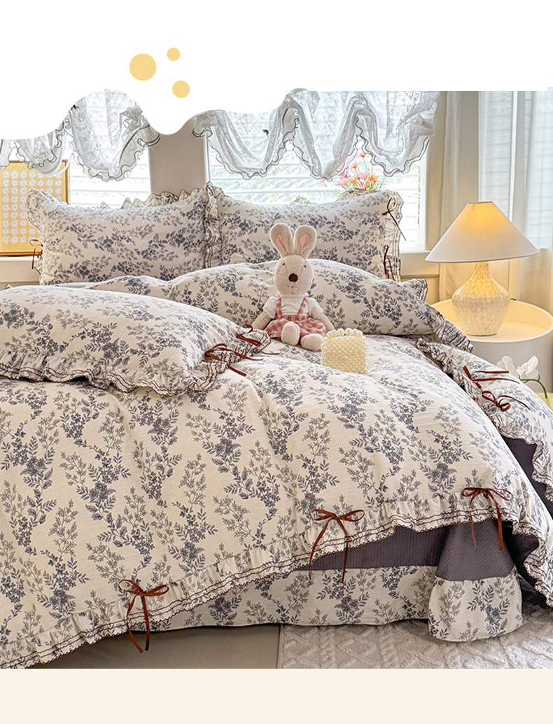 (总)韩约家纺 2026新款韩式花边古法棉感床盖四件套,知否,午后时光,漫花蝶舞,莓莓果,花影,甜心狗,初遇,萝莉,雨沫