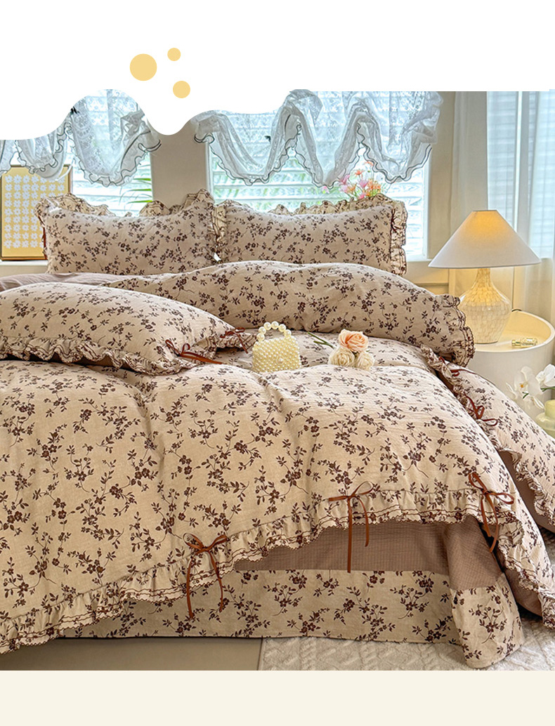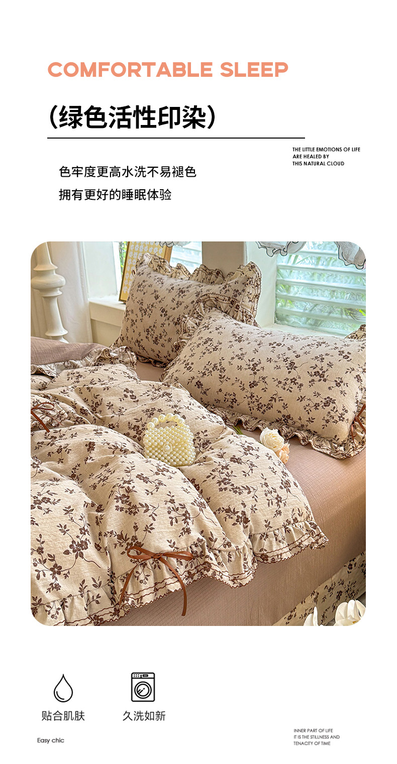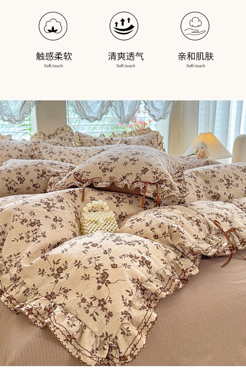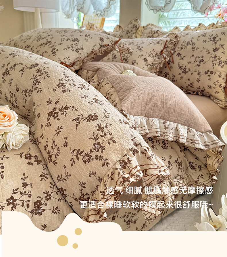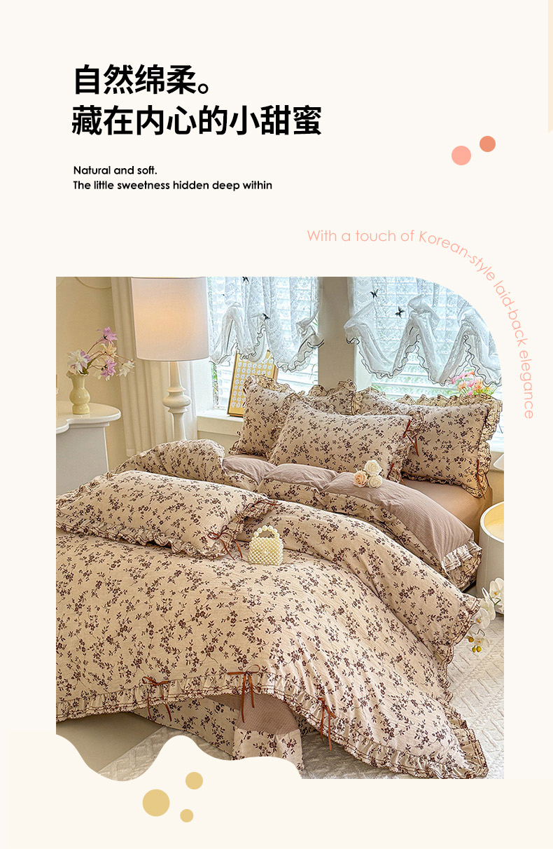 (总)韩约家纺 2026新款韩式花边古法棉感床盖四件套,知否,午后时光,漫花蝶舞,莓莓果,花影,甜心狗,初遇,萝莉,雨沫