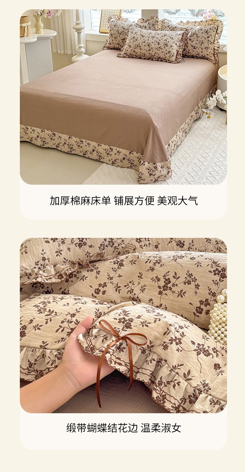 商品名称:韩约家纺 2025新款1韩式蝴蝶结加厚床单款棉麻四件套 雅致