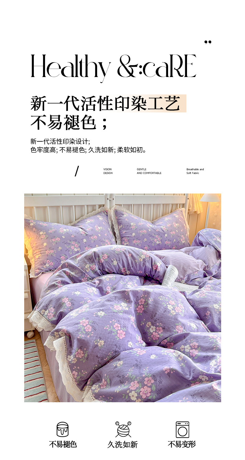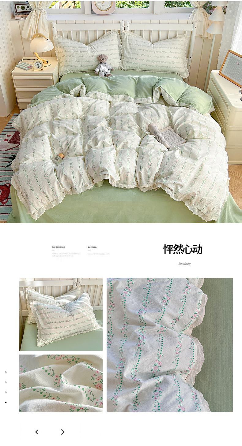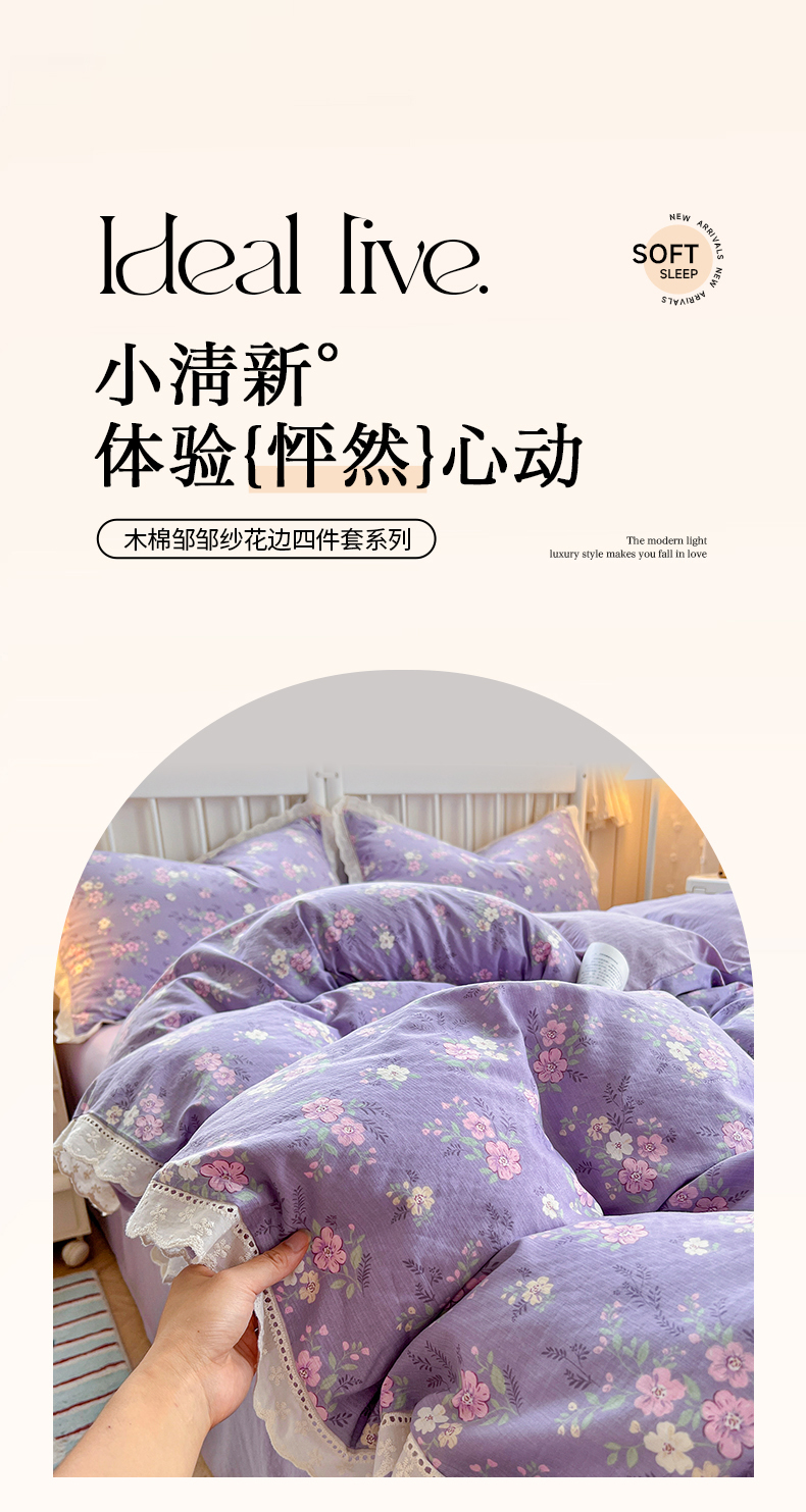 当前位置: 91家纺网 > 商品网购 > 床品套件 > 四件套 > 其它四件套 > 赫然家纺 2026新款云感皱皱双层纱法式镂空全棉花边款四件套 怦然心动