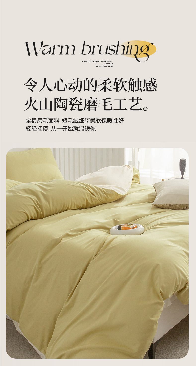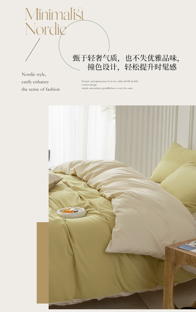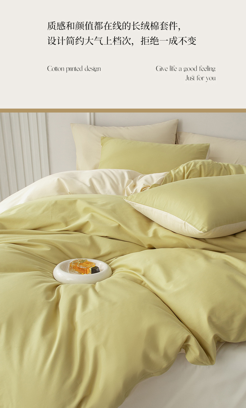 当前位置: 91家纺网 > 商品网购 > 床品套件 > 四件套 > 普通磨毛四件套 > ONE TWO ONE 121 2025新款A类高支高密长绒棉双拼磨毛(小cr )撞色四件套 青提拼奶玉