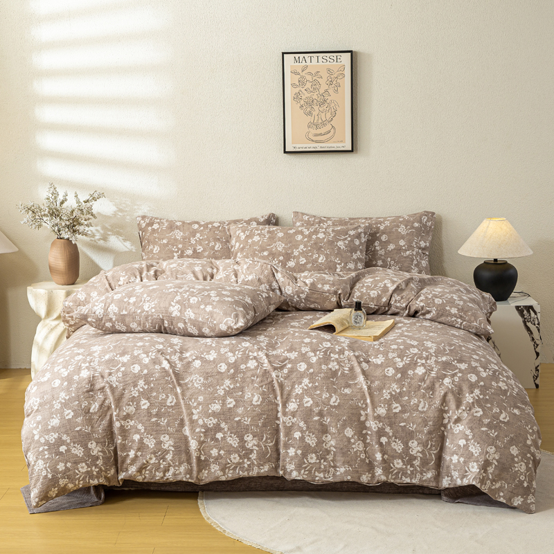 (总)七里香 2025秋冬新品A类加厚高克重原麻复古风亚麻皱皱纱印花四件套,布袋装组合图,粉黛,花蕾-咖,花蕾-绿,金枝玉叶,锦簇,盛夏,素锦,向阳花开,一抹香,绽放