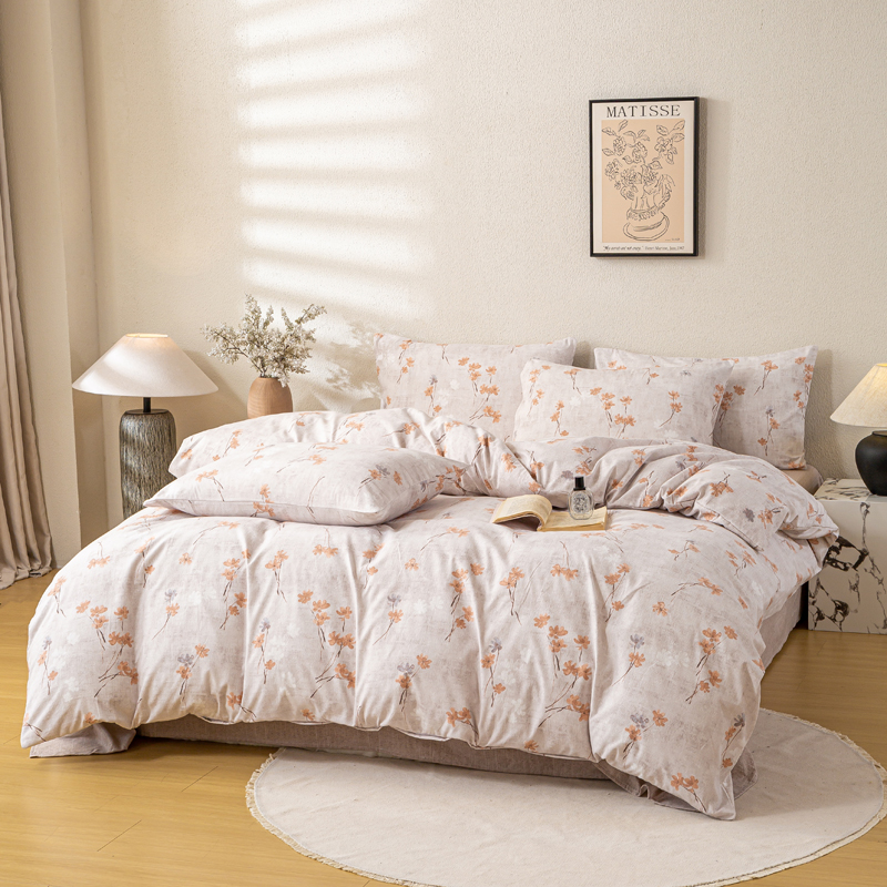 七里香 2025秋冬新品A类加厚高克重原麻复古风亚麻皱皱纱印花四件套 粉黛