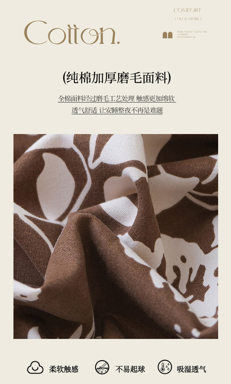 慕绸家纺(原萌宝老粗布厂家) 2025秋冬新款加厚纯棉磨毛印花四件套 枝缦