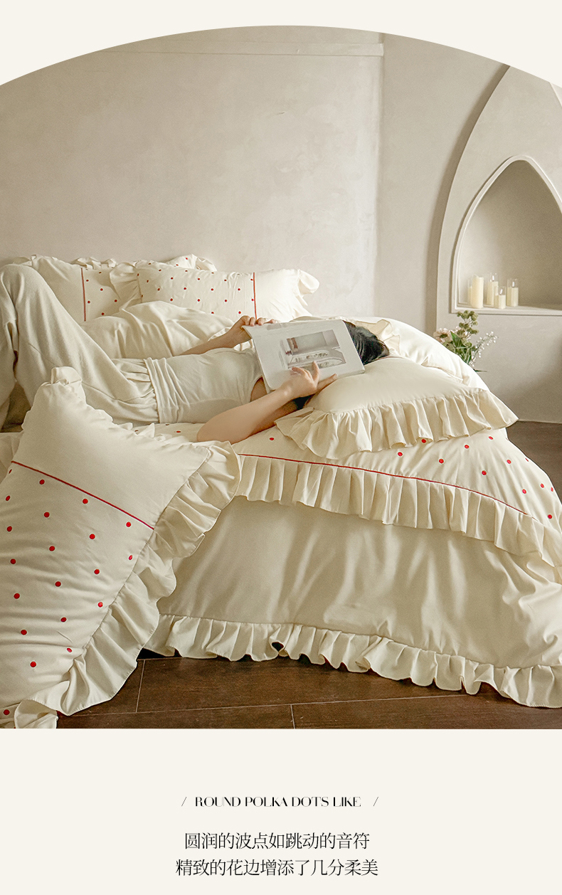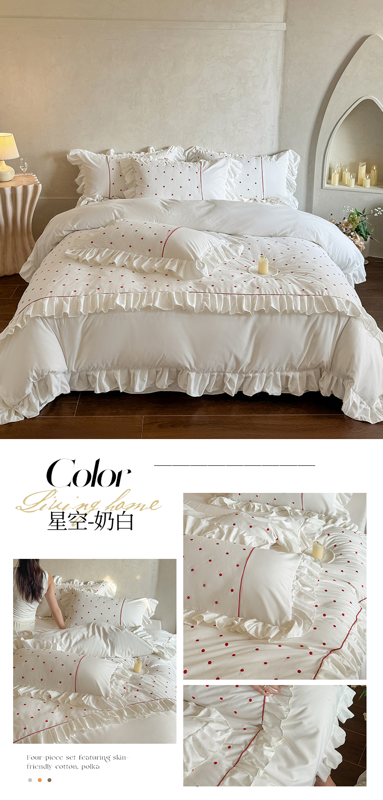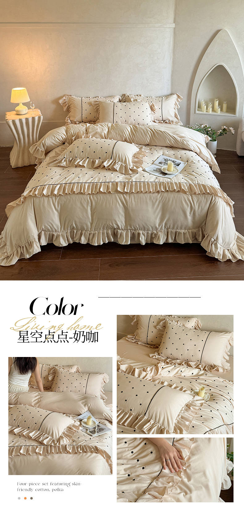 (总)豪美鑫 2025新款牛奶绒波点刺绣花边四件套-波尔卡系列,黑色波尔卡-卡其色,黑色波尔卡-奶白,黑色波尔卡-香槟色,红色波尔卡-卡其色,红色波尔卡-奶白,红色波尔卡-香槟色