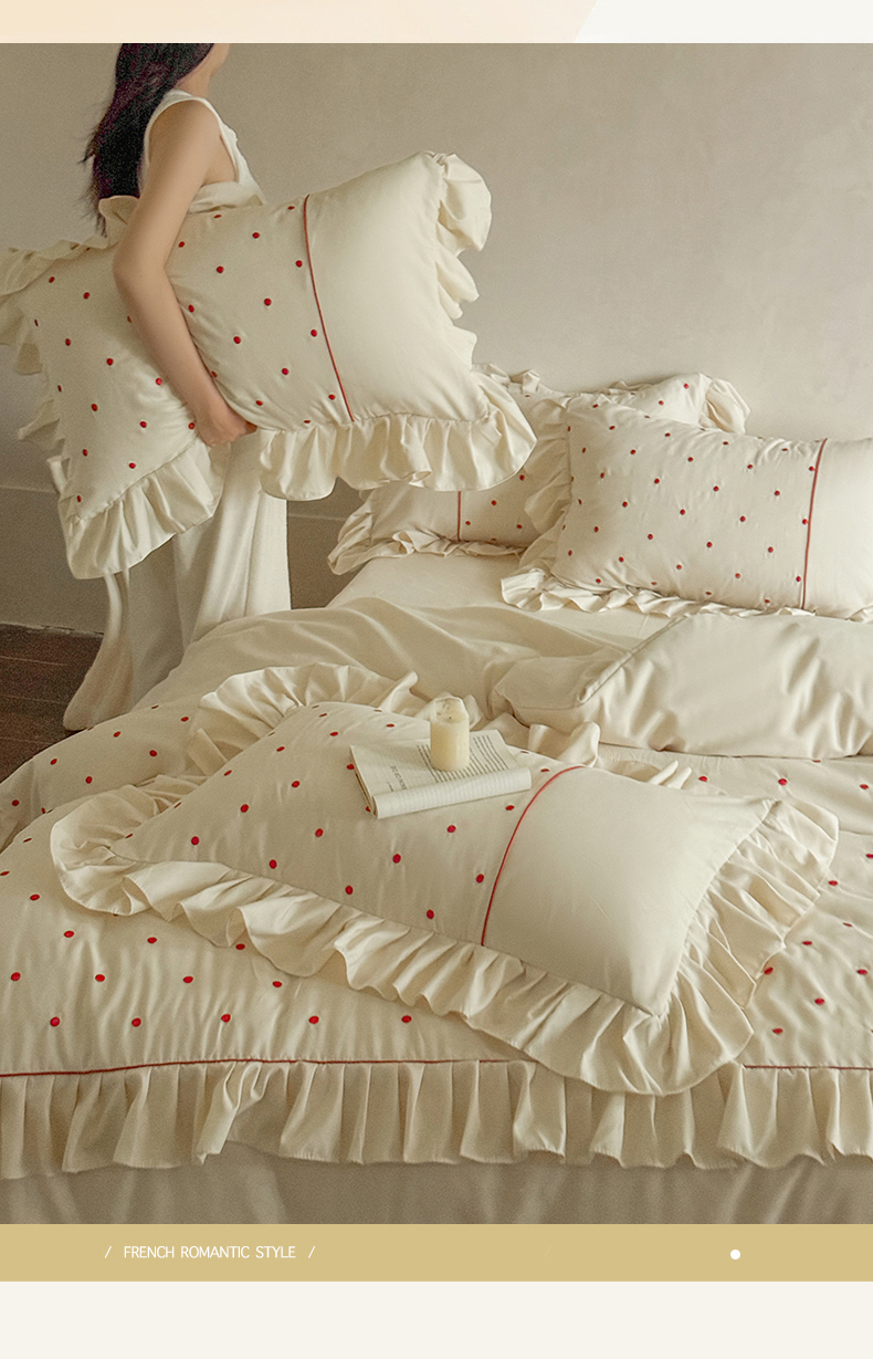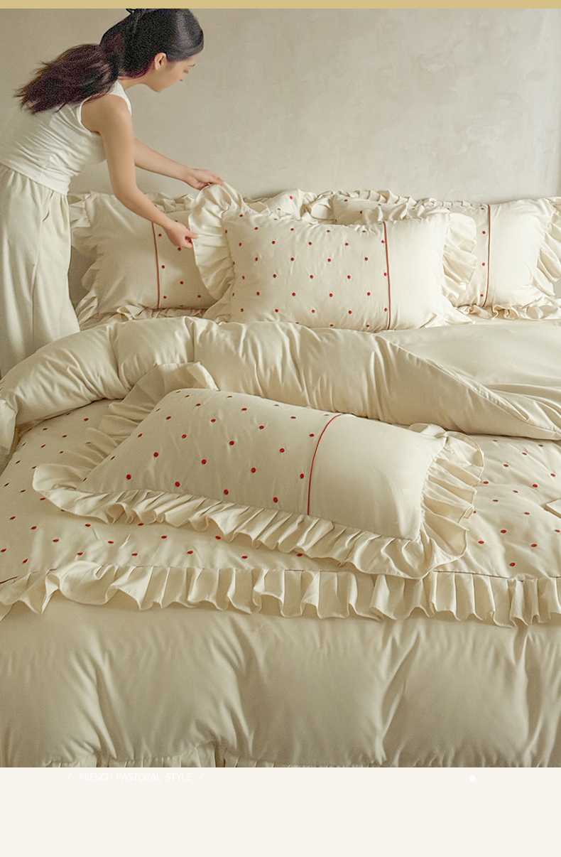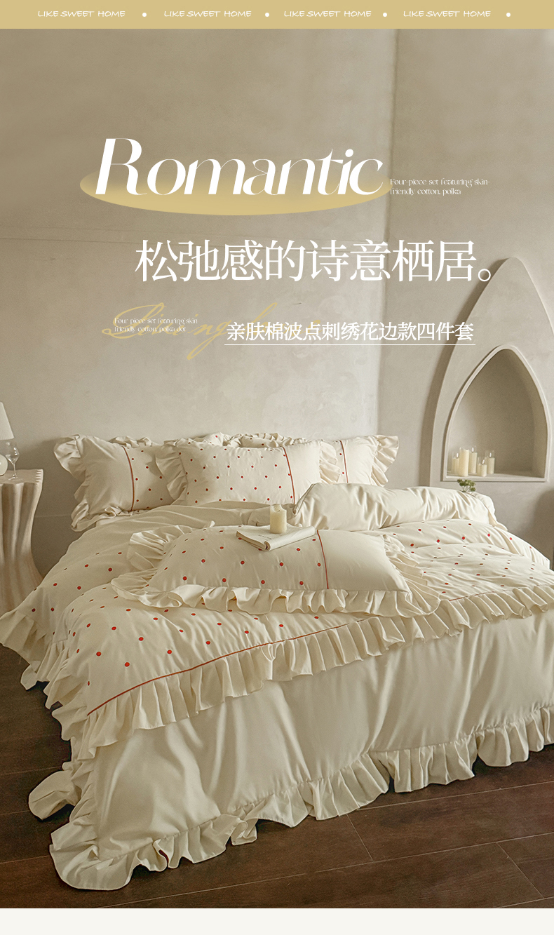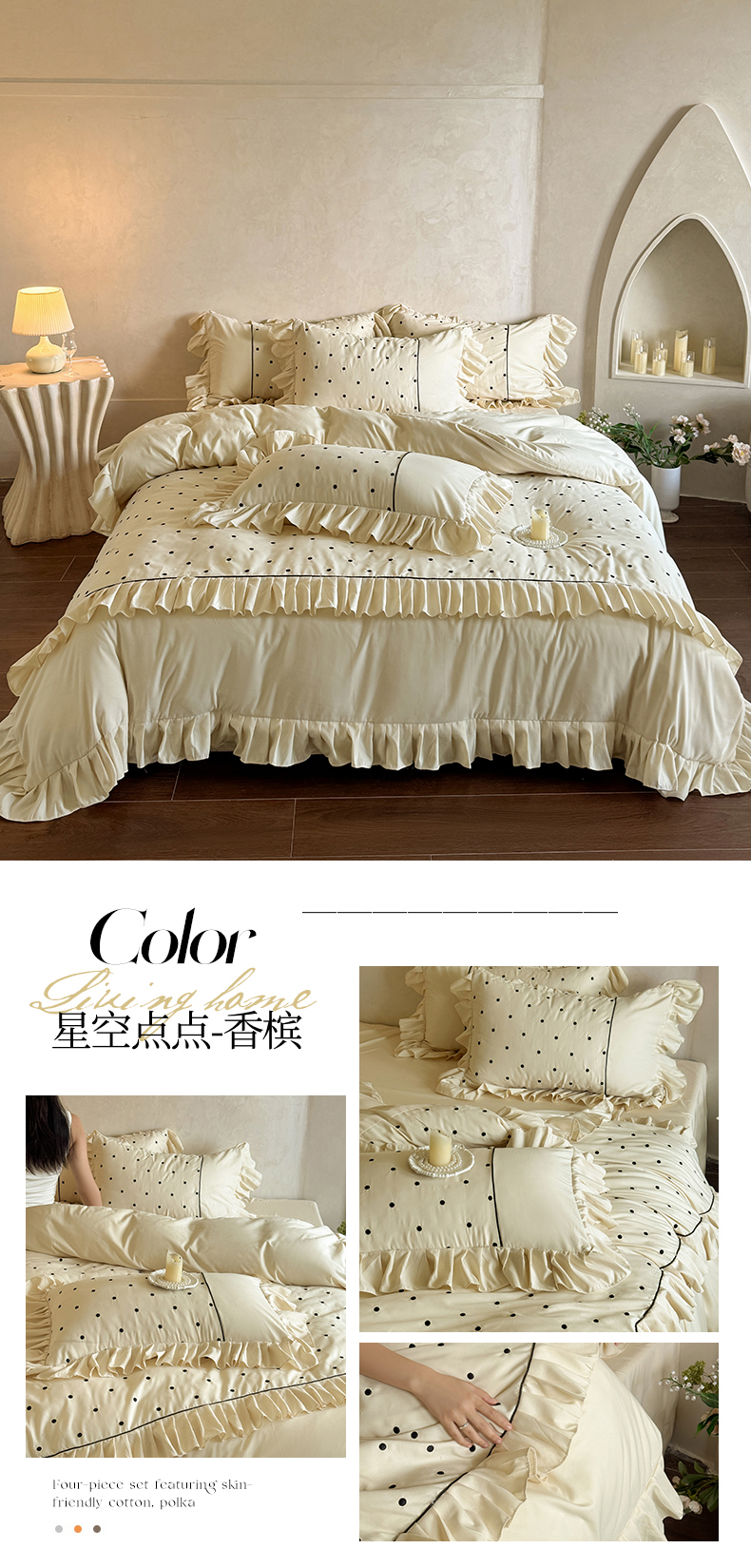 (总)豪美鑫 2025新款牛奶绒波点刺绣花边四件套-波尔卡系列,黑色波尔卡-卡其色,黑色波尔卡-奶白,黑色波尔卡-香槟色,红色波尔卡-卡其色,红色波尔卡-奶白,红色波尔卡-香槟色