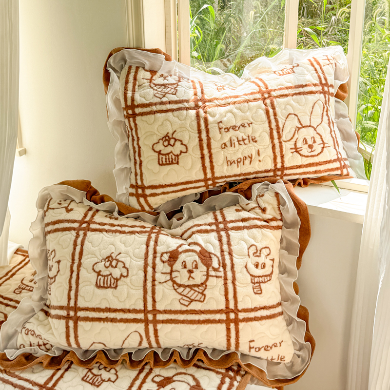 (总)禧缘家纺(原梦想家) 2025新款夹棉双层花边牛奶绒枕套系列,浪漫花开,布布乐园,步步生花,狗狗岛屿,蓝铃风语,落日云舒,猫咪心事,摩卡小镇,雾都茶花,杏花微雨