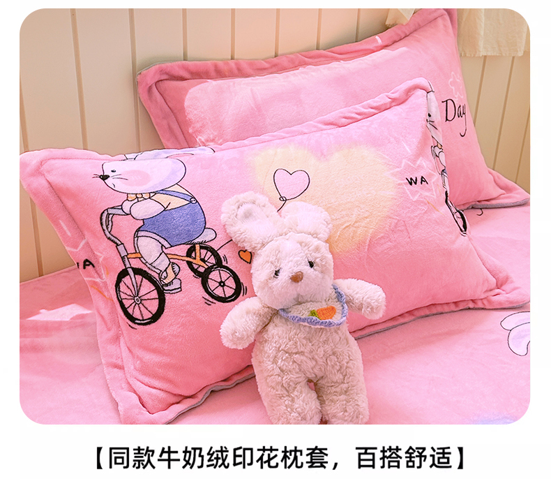 家贝爱 2025新款高克重加厚牛奶绒床笠单床笠床笠单品 比心