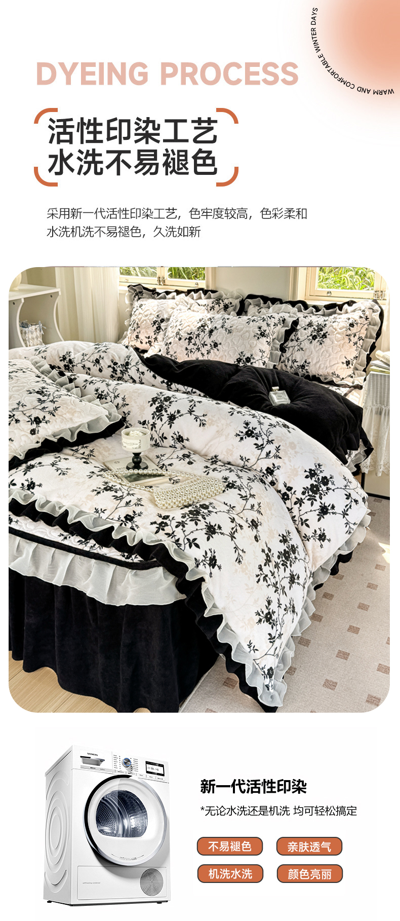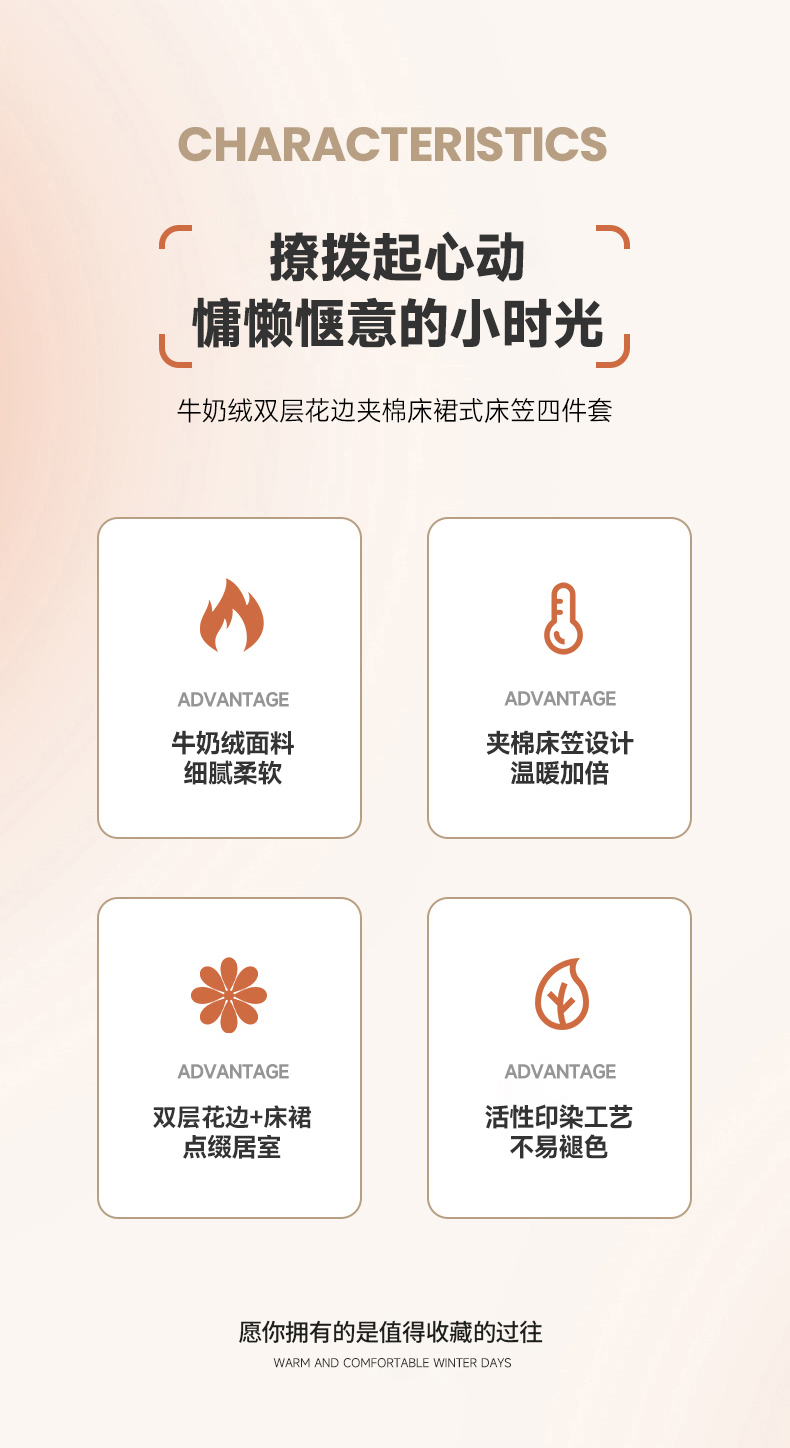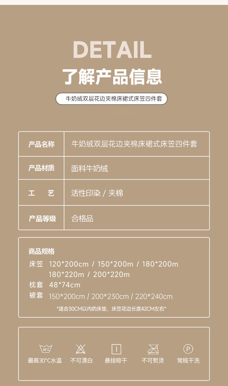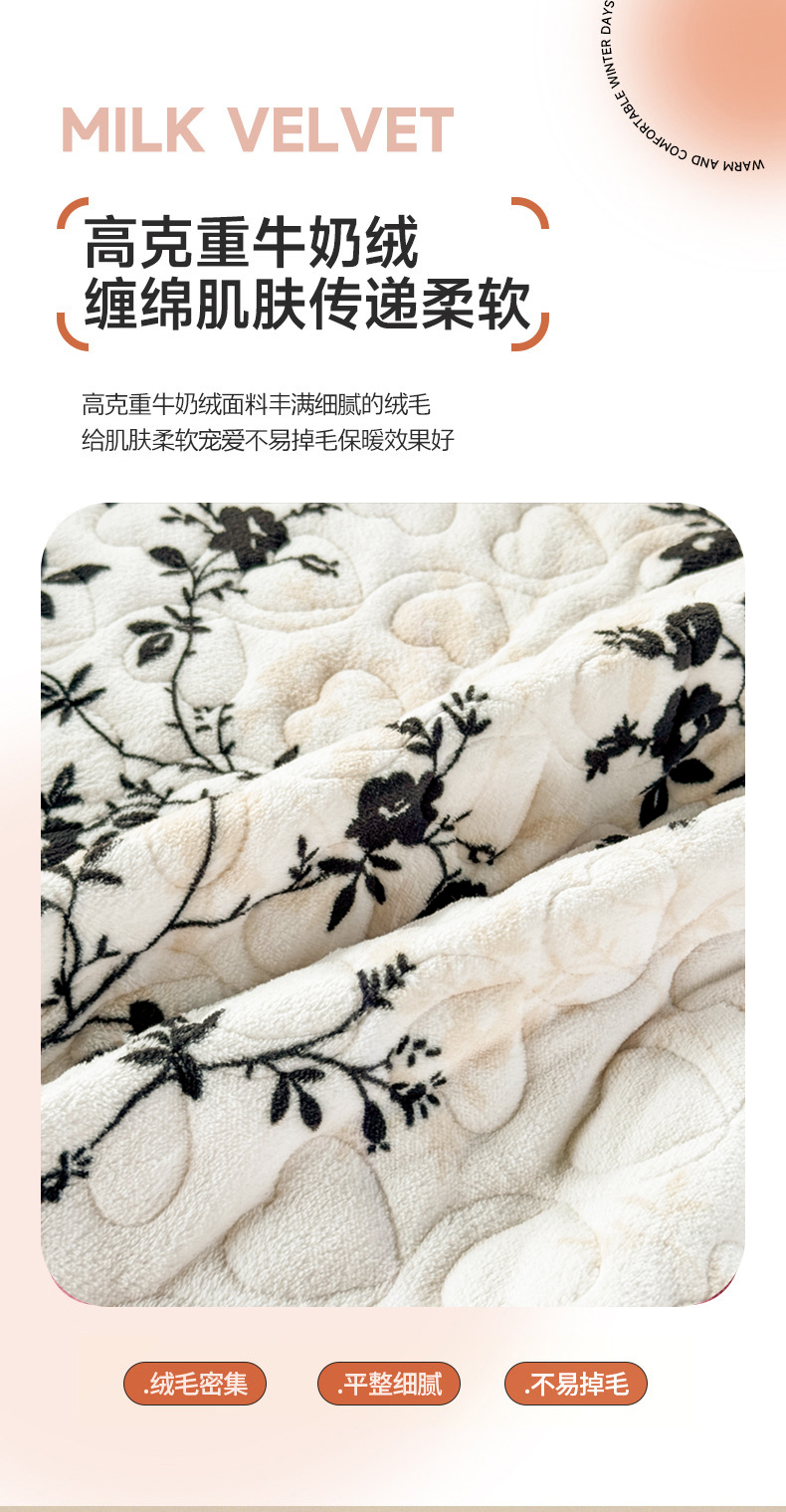 商品名称:禧缘家纺(原梦想家) 2025新款夹棉双层花边床笠牛奶绒系列四件套 步步生花