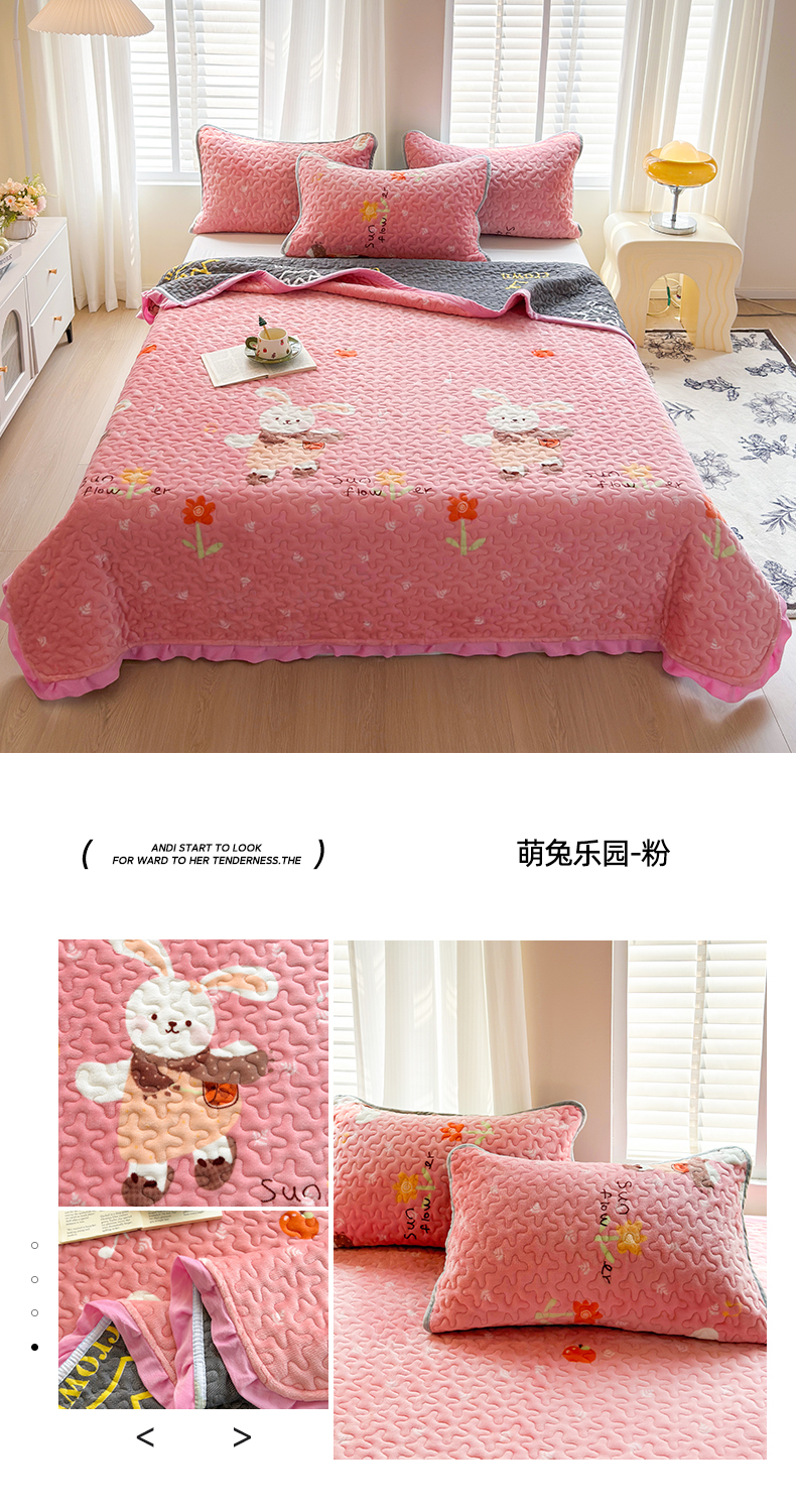 商品名称:梦莱家纺 2025新款牛奶绒花边单床盖三件套 樱花粉