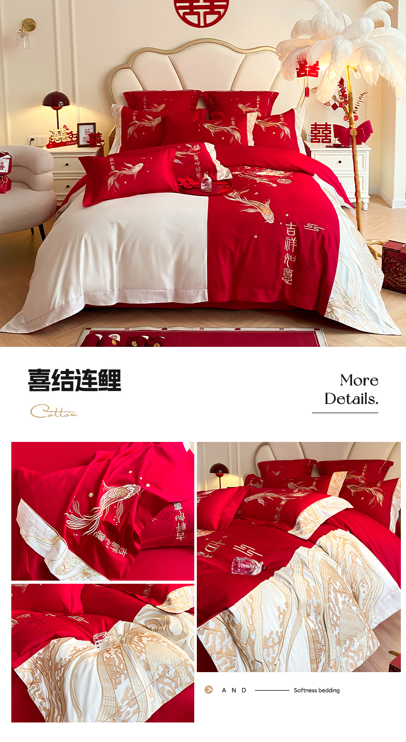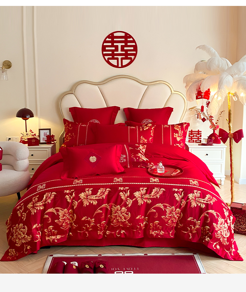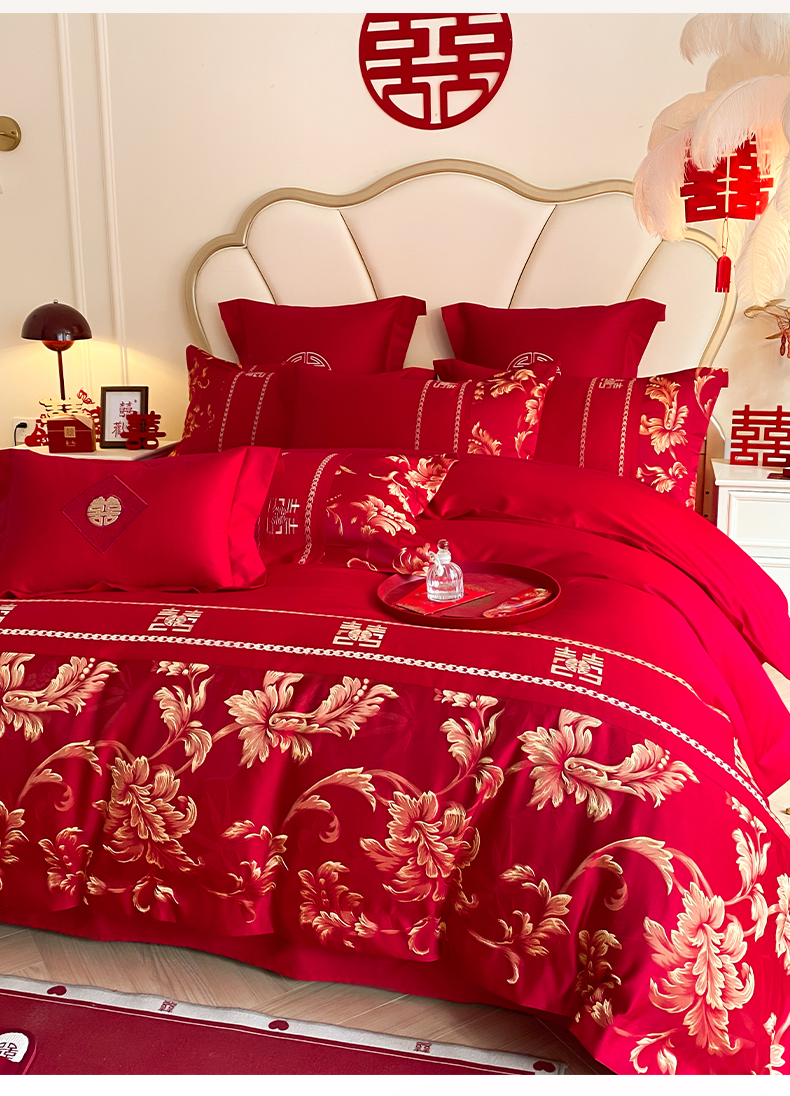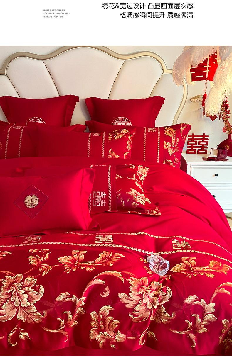 (总)博纳家纺 2025新款亲肤棉婚庆绣花款四件套,平安喜乐,百喜纳福,富贵传承,国色天香,欢天喜地,龙凤呈祥,龙凤大喜,玫瑰庄园,欧式风情,吾家大喜,喜爱,喜结连鲤,喜悦,一往情深