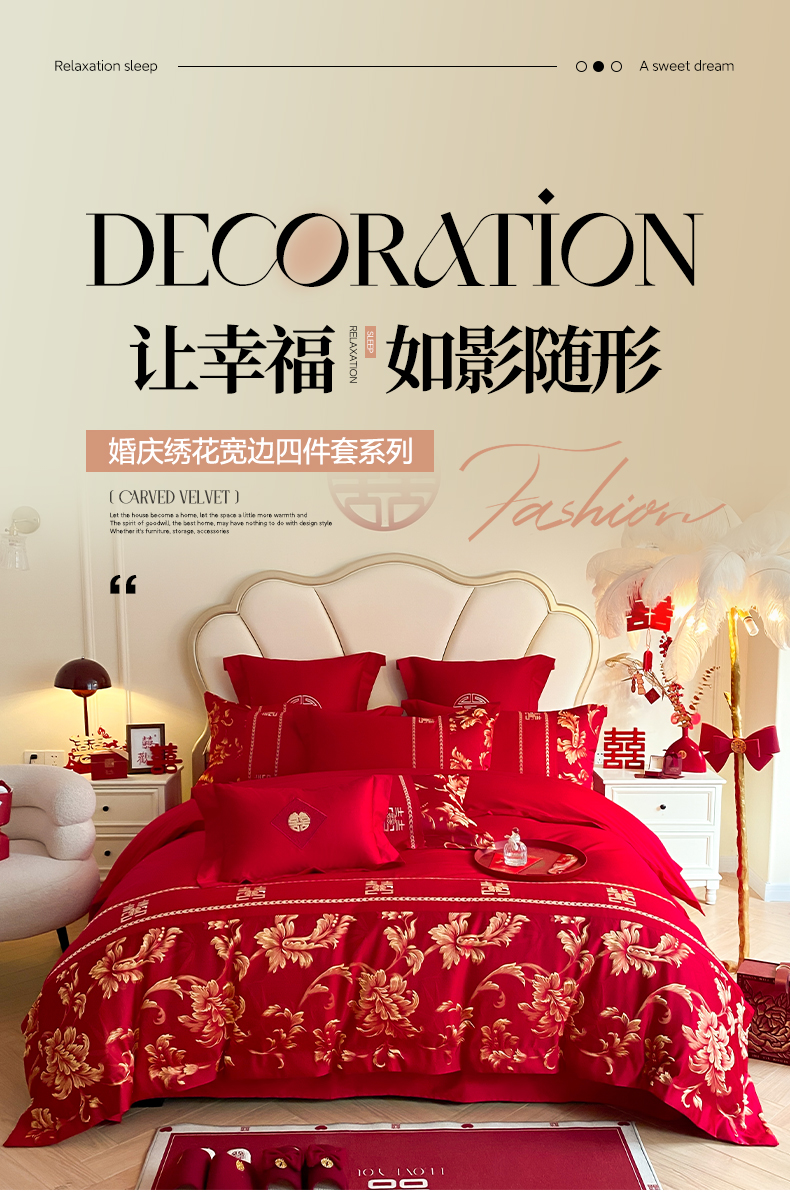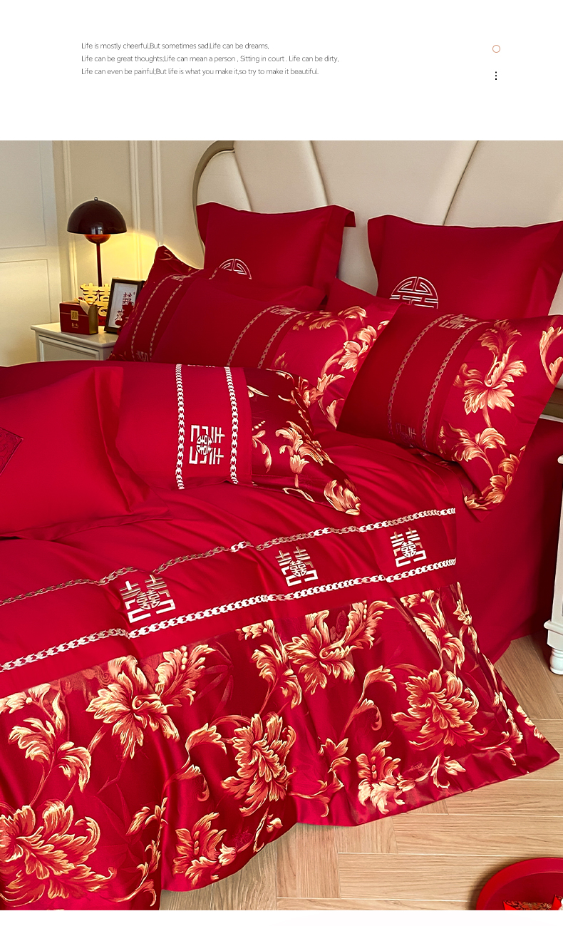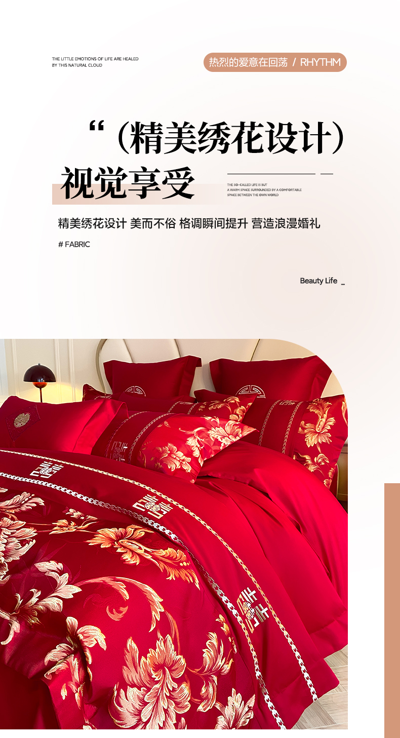 (总)博纳家纺 2025新款亲肤棉婚庆绣花款四件套,平安喜乐,百喜纳福,富贵传承,国色天香,欢天喜地,龙凤呈祥,龙凤大喜,玫瑰庄园,欧式风情,吾家大喜,喜爱,喜结连鲤,喜悦,一往情深