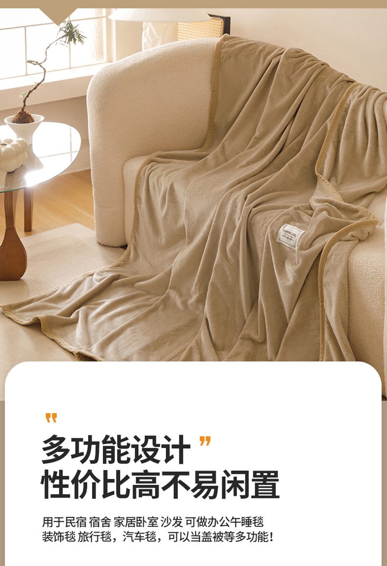 悦然毛巾被 2025新款300克印花牛奶绒盖毯休闲毯素色毛毯毯子 玉白