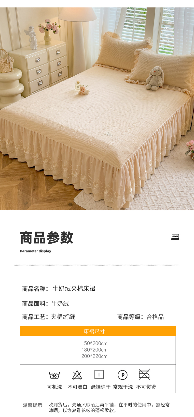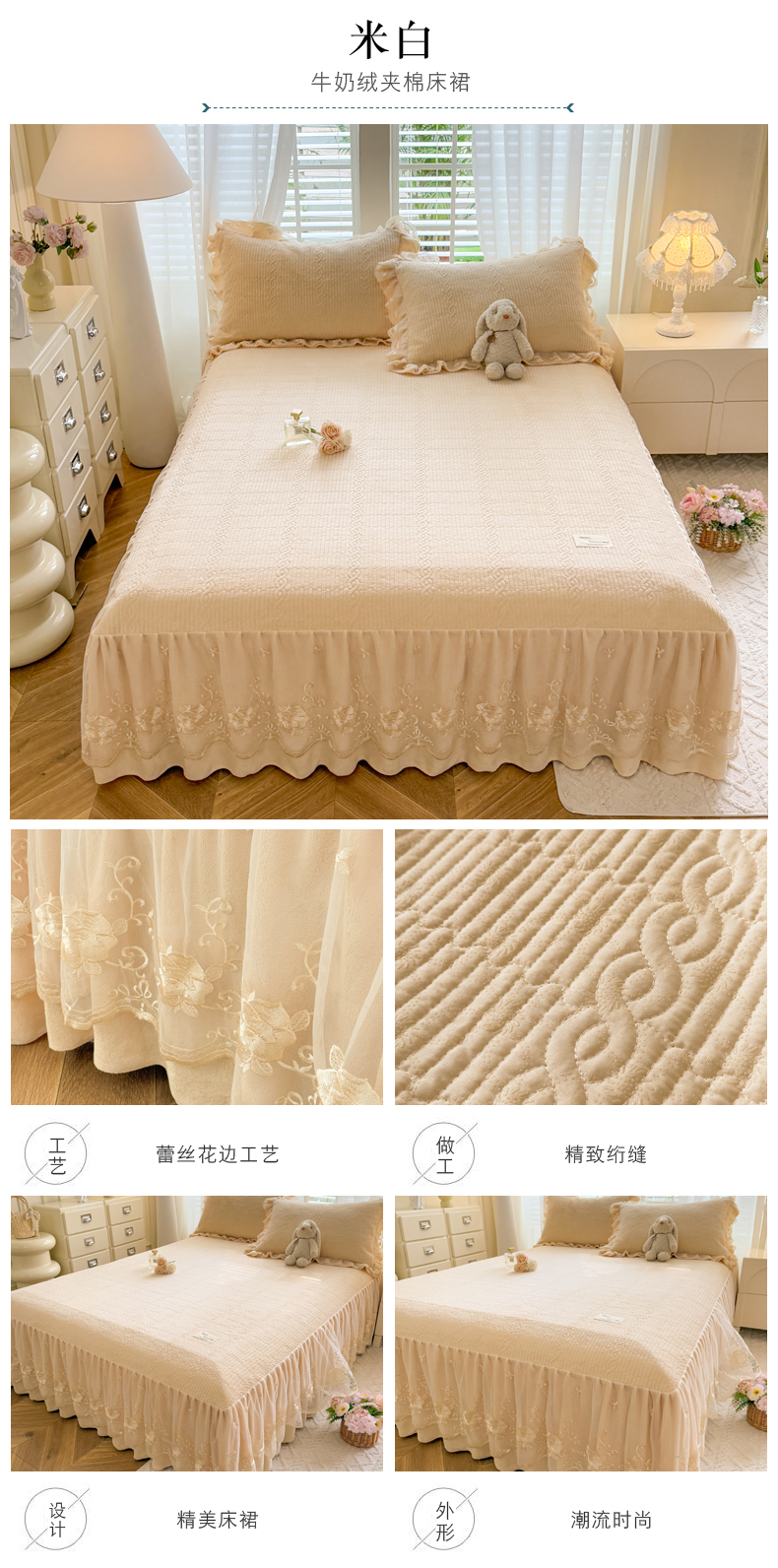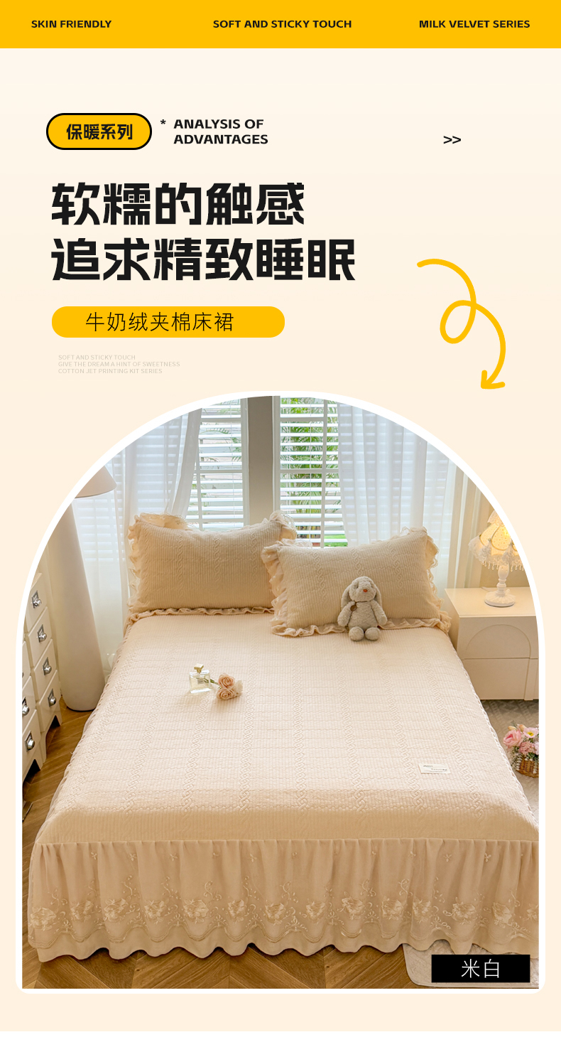 美达家纺 2025新款牛奶绒纯色夹棉床裙 牛奶绒夹棉床裙-米白