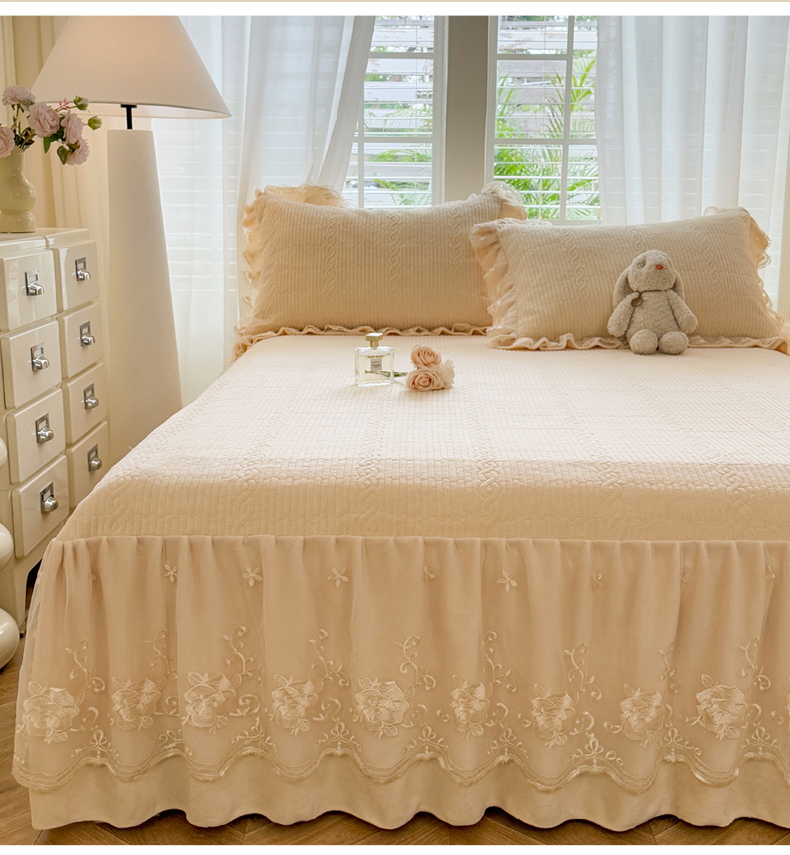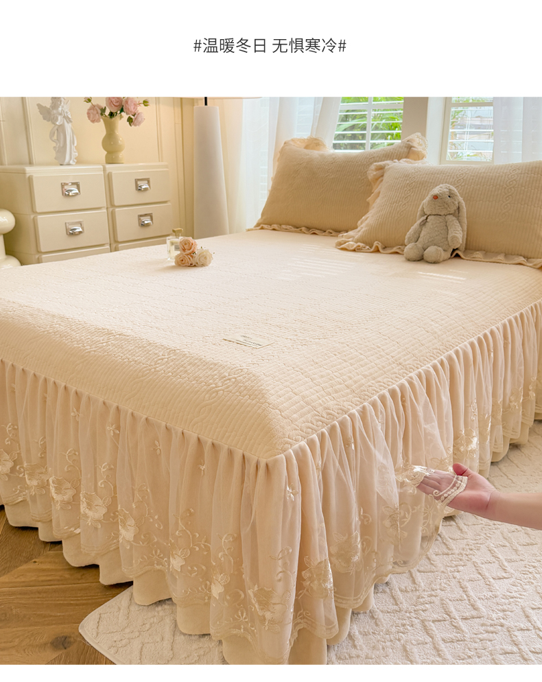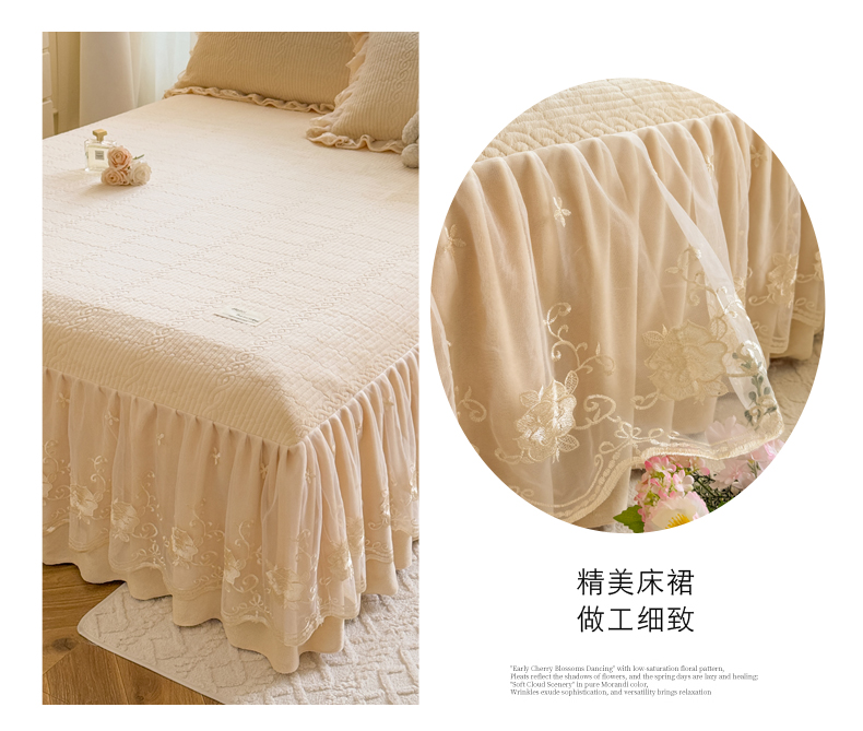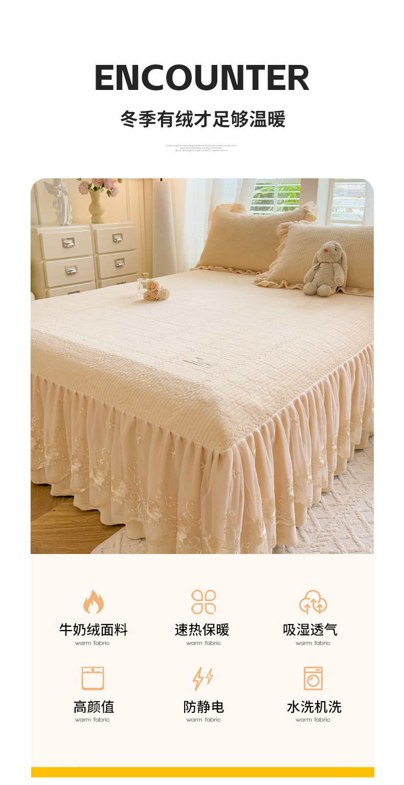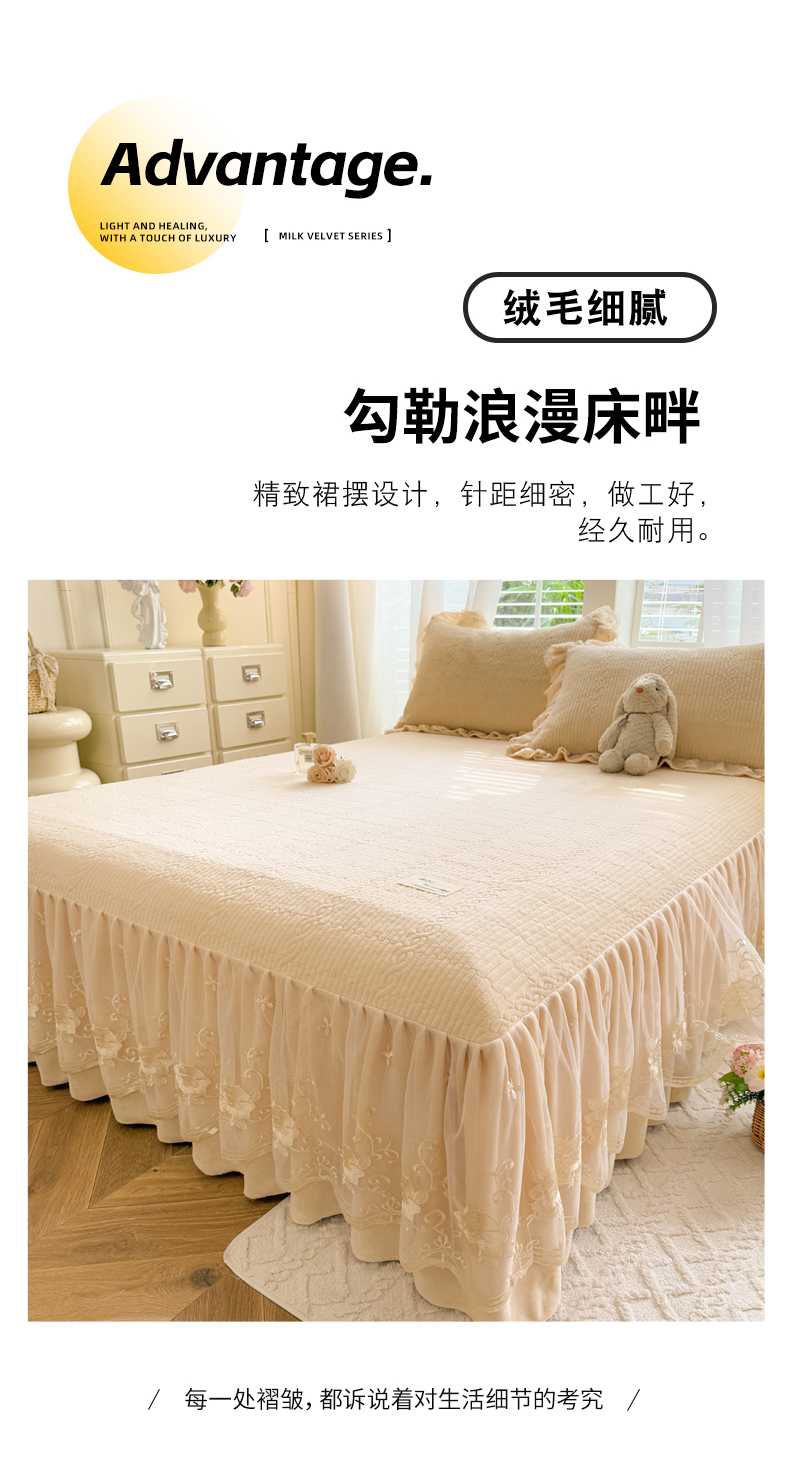 美达家纺 2025新款牛奶绒纯色夹棉床裙 牛奶绒夹棉床裙-米白