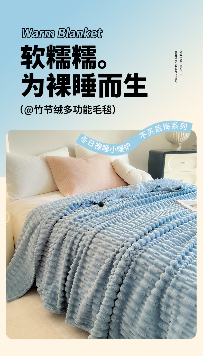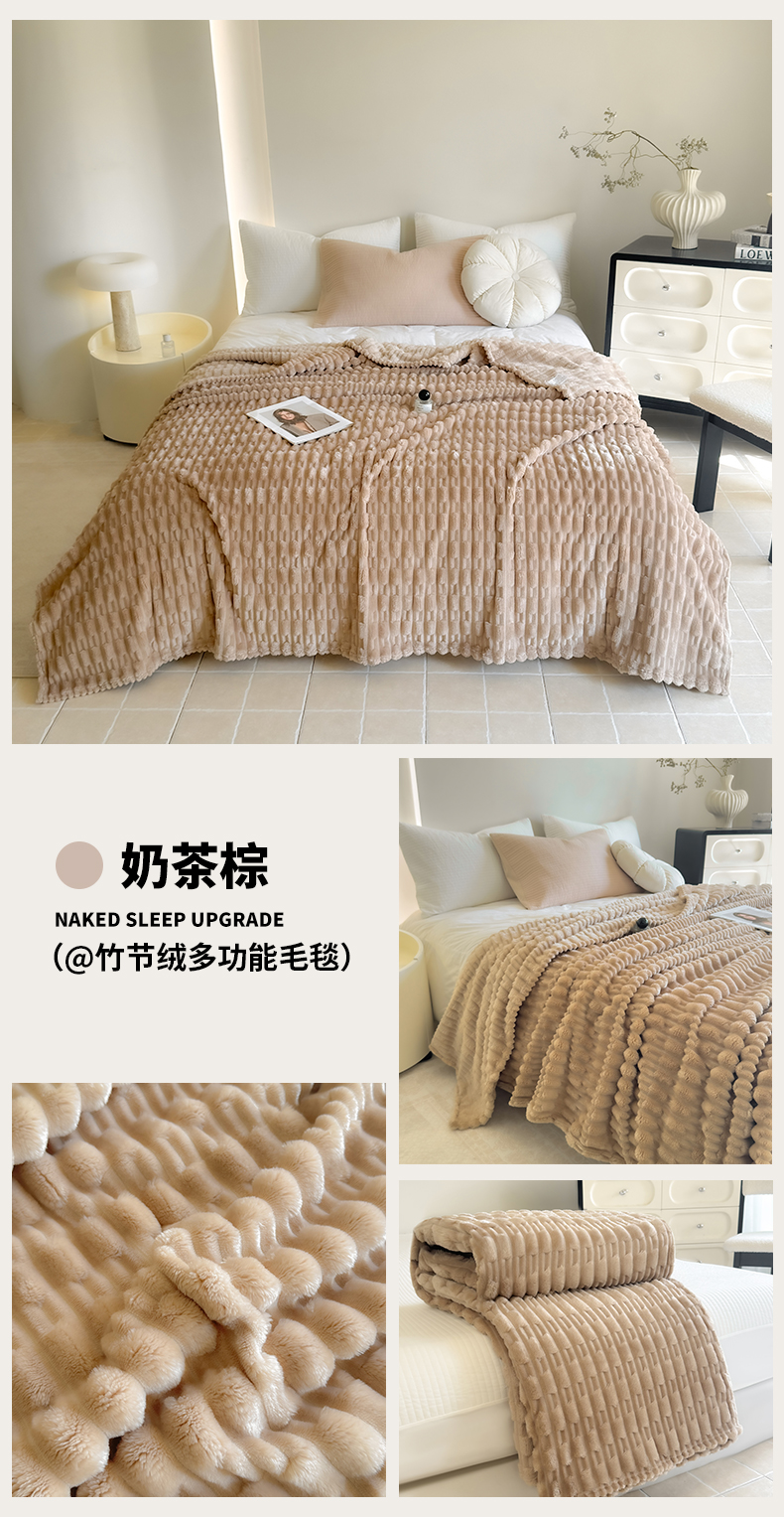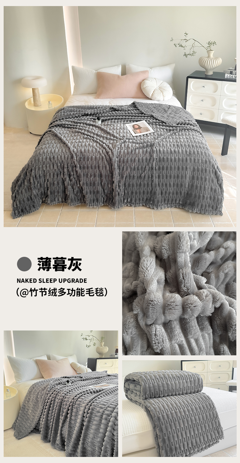 (总)穆琪 2025新款高克重竹节绒毛毯兔毛绒办公家用多功能毯子,薄暮灰,奶茶棕,青竹绿,晴山蓝,珊瑚粉,云朵白