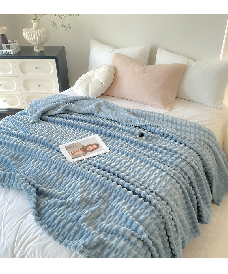 (总)穆琪2025新款轻奢盖毯高克重多层提花绵柔绒保暖毛毯绵密亲肤沙发毯休闲小毯子,果绿,浅咖,秋波蓝,水晶紫,象牙白,陨石灰