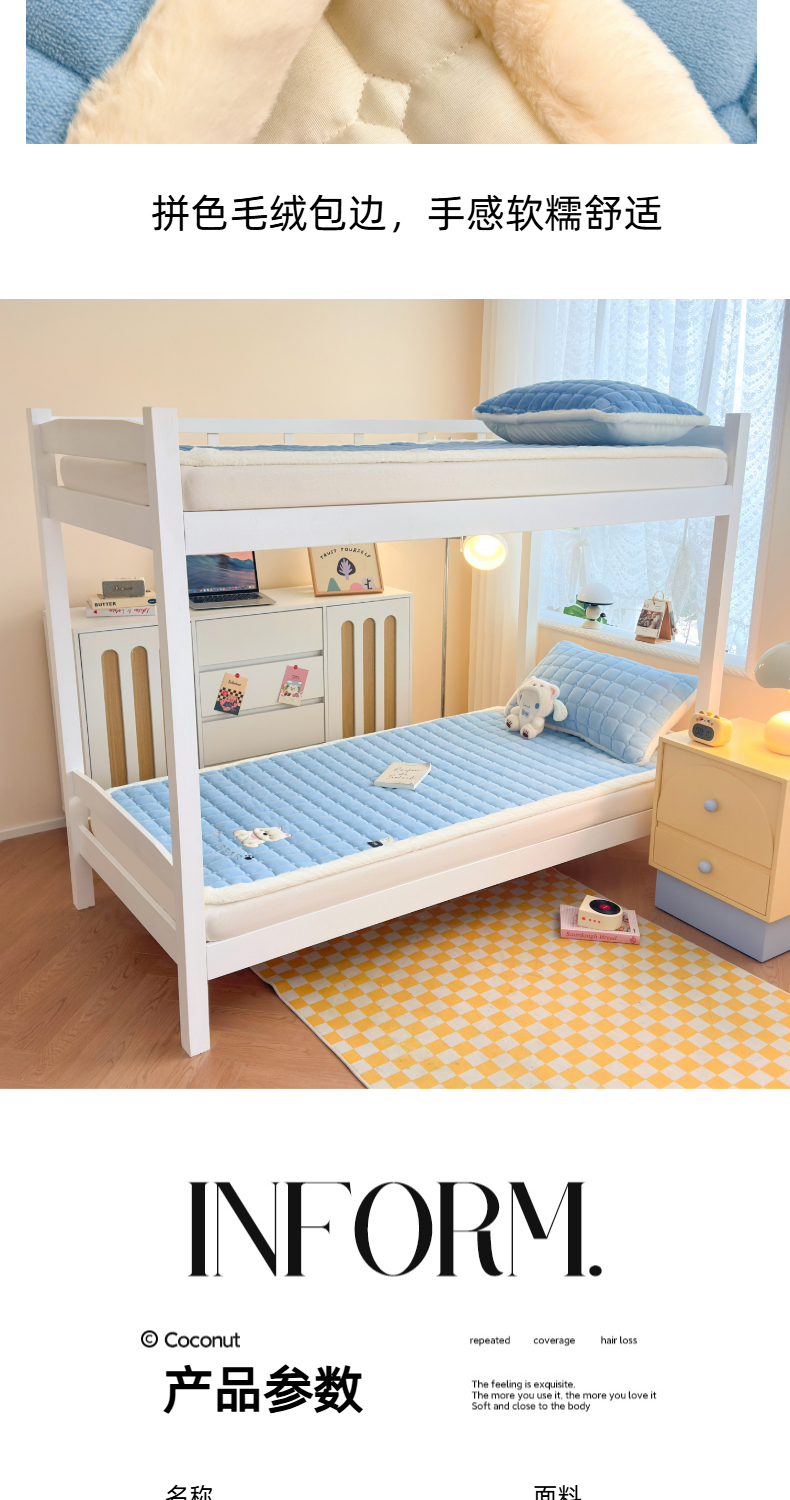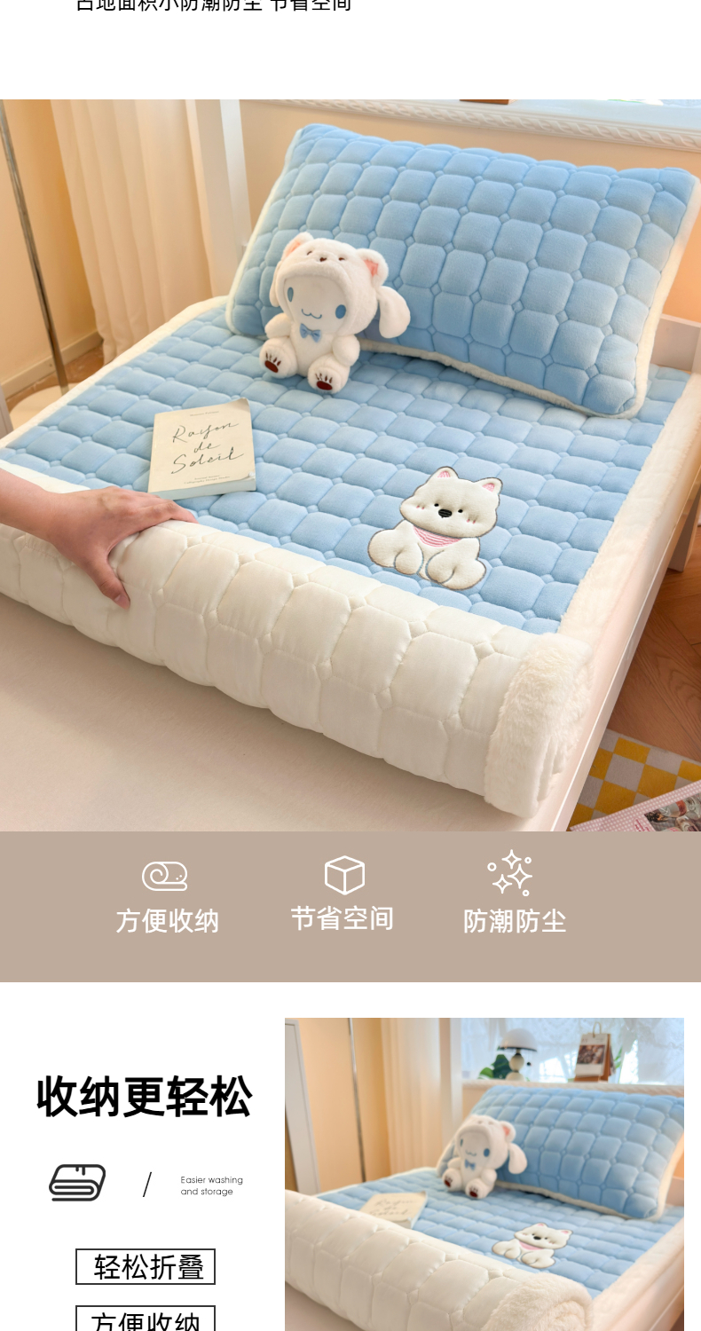 当前位置: 91家纺网 > 商品网购 > 床垫/床褥 > 普通床垫 > 爱屋及屋 2025新款牛奶绒毛巾绣床垫-学生床 luck狗-天空蓝