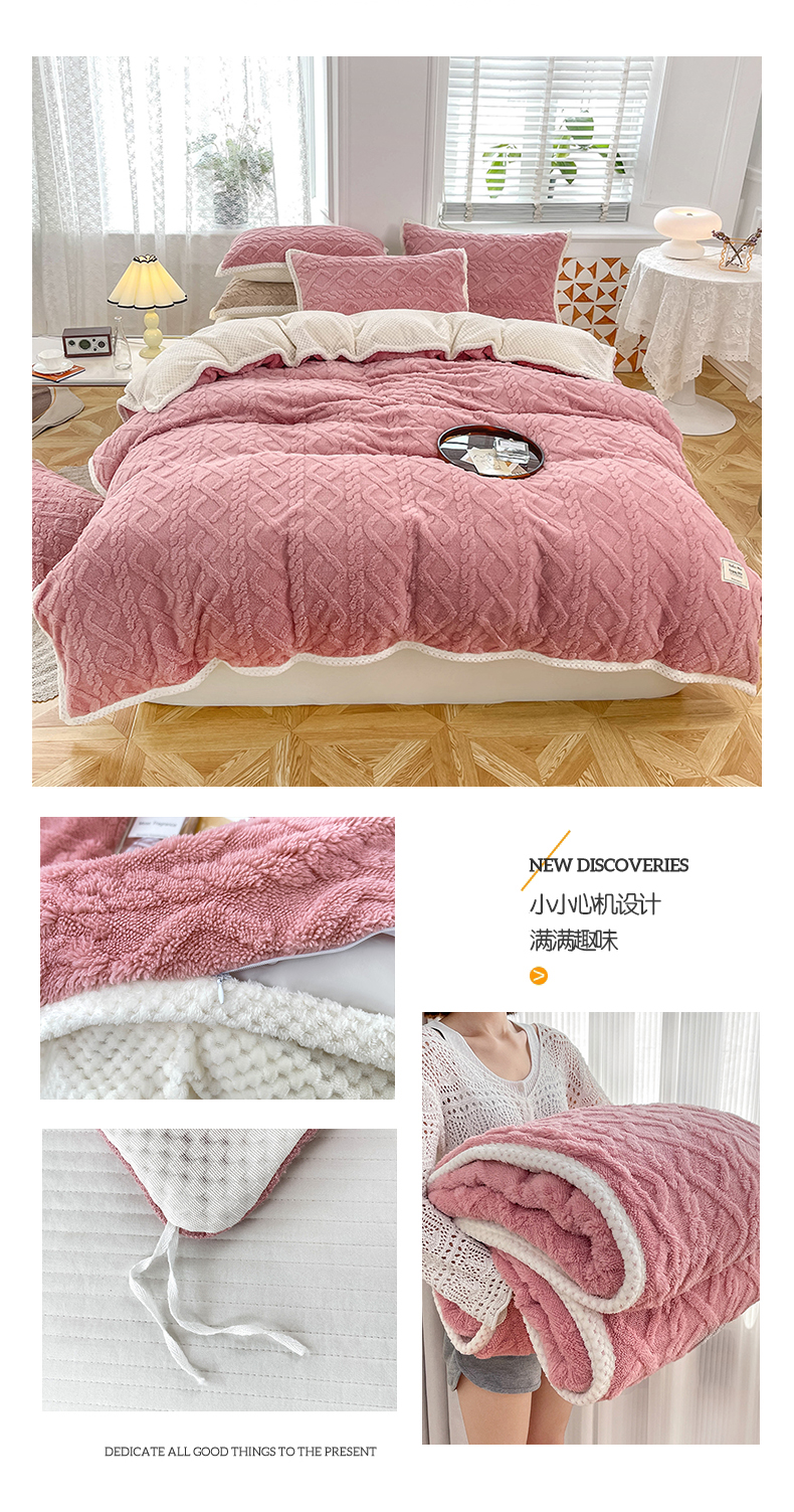 商品名称:雅诗帛 冬季加绒四件套云朵绒法莱绒牛奶绒雕花绒水晶绒塔芙绒毛毯学生宿舍保暖加绒加厚珊瑚绒双面绒 焦糖