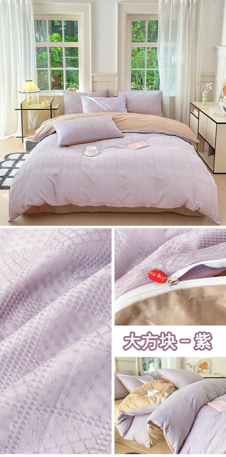 当前位置: 91家纺网 > 商品网购 > 床品套件 > 四件套 > 全棉普通四件套 > 菡宝 2025新款全棉纯棉色织小提花四件套支持定制定做尺寸 大方块紫