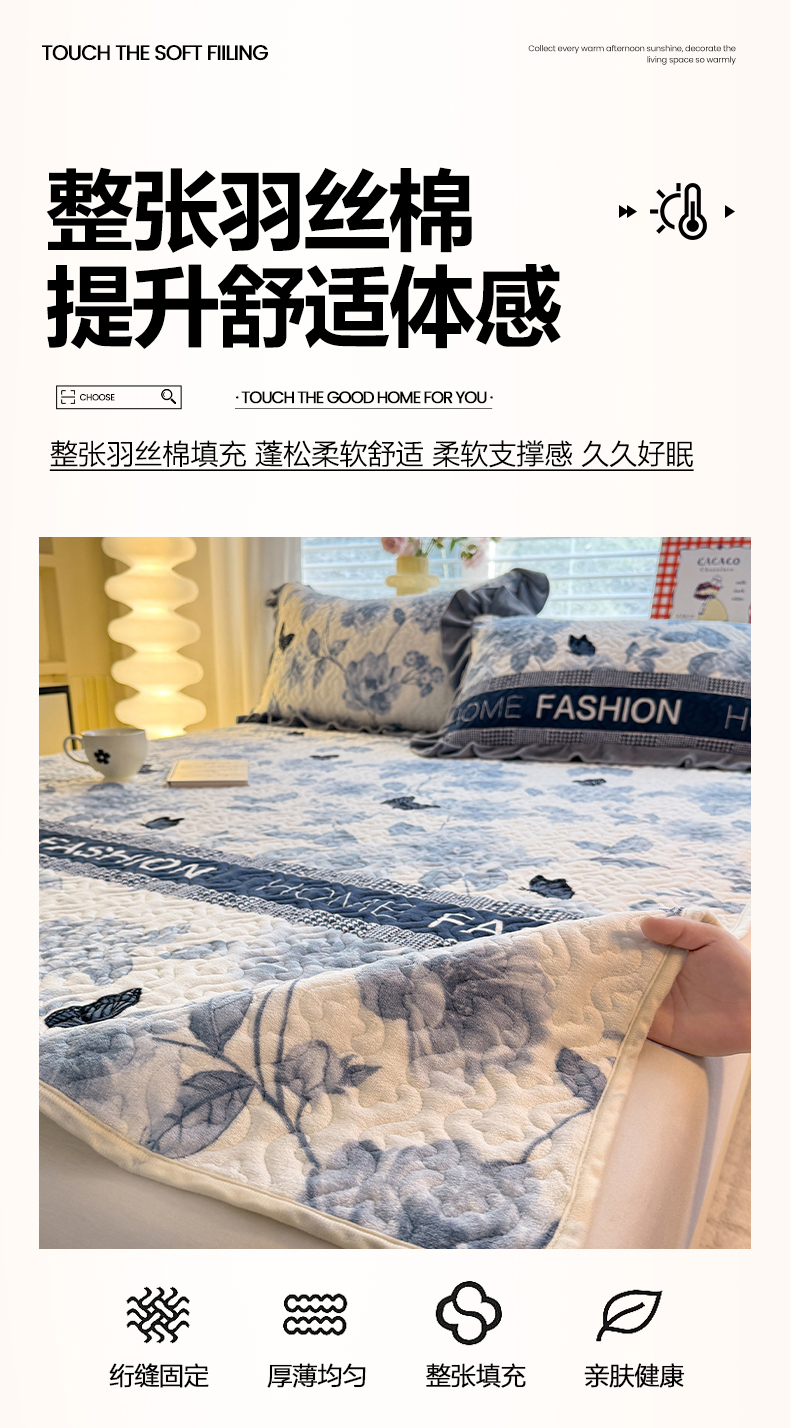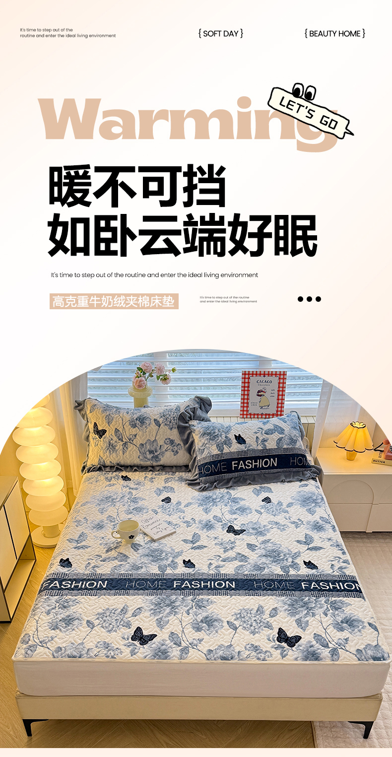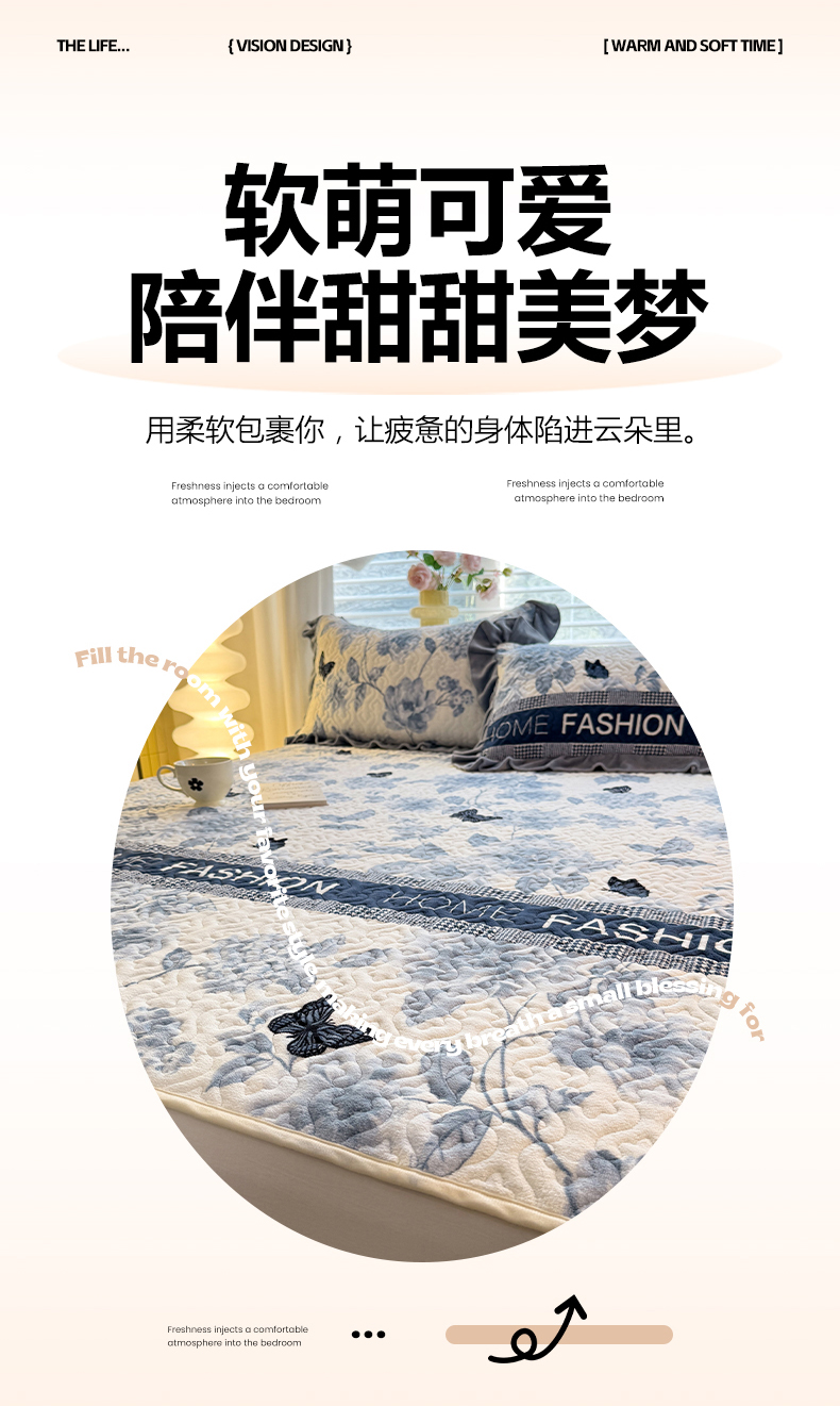 美达家纺 2025新款高克重牛奶绒夹棉床垫 梦蝶