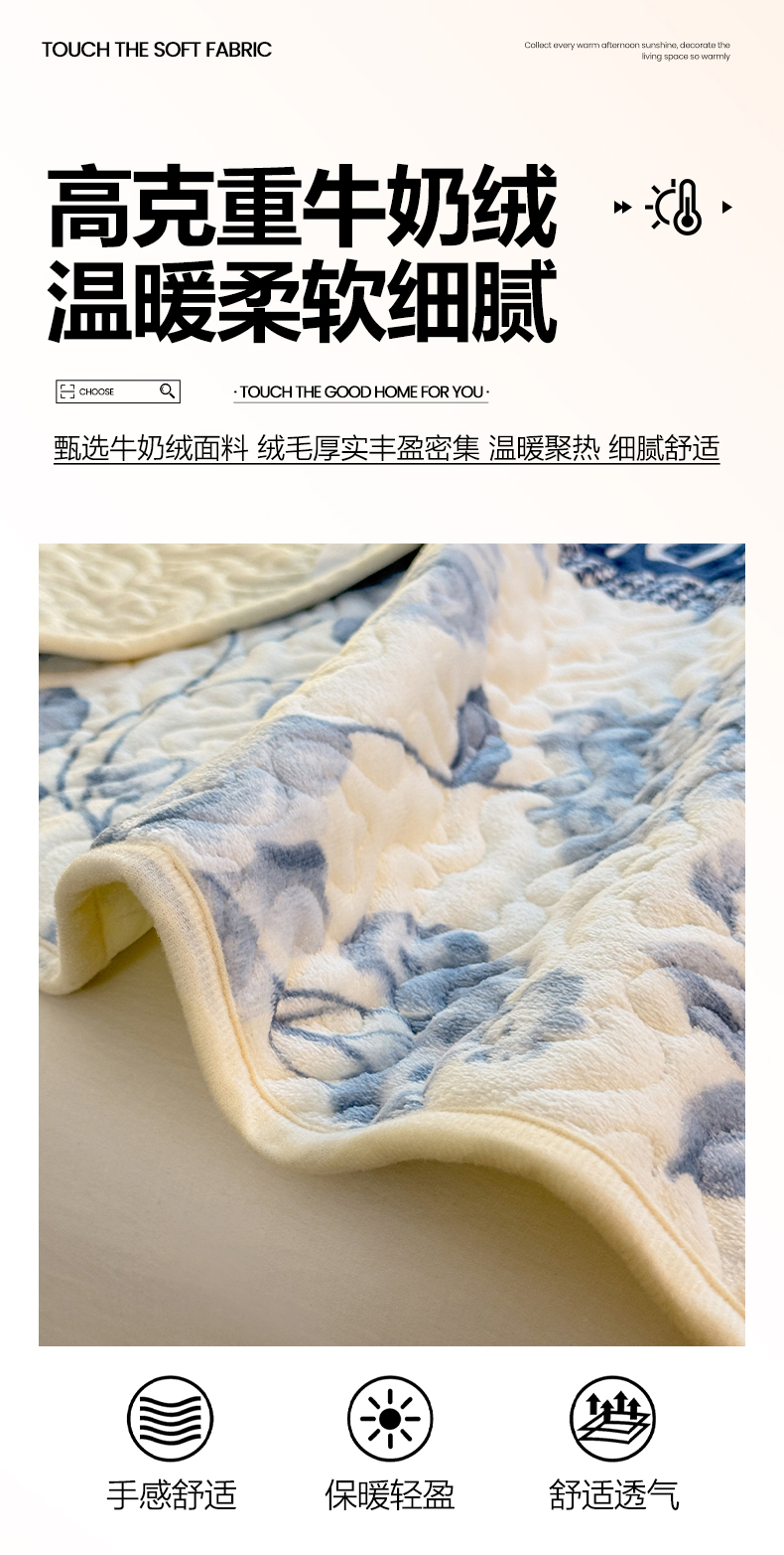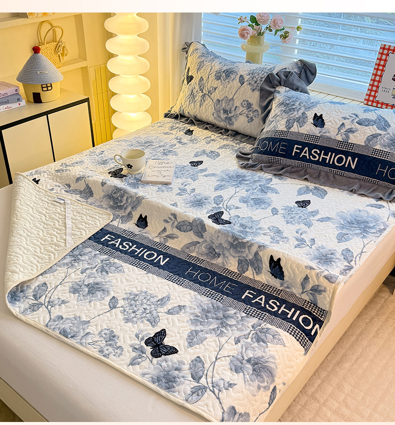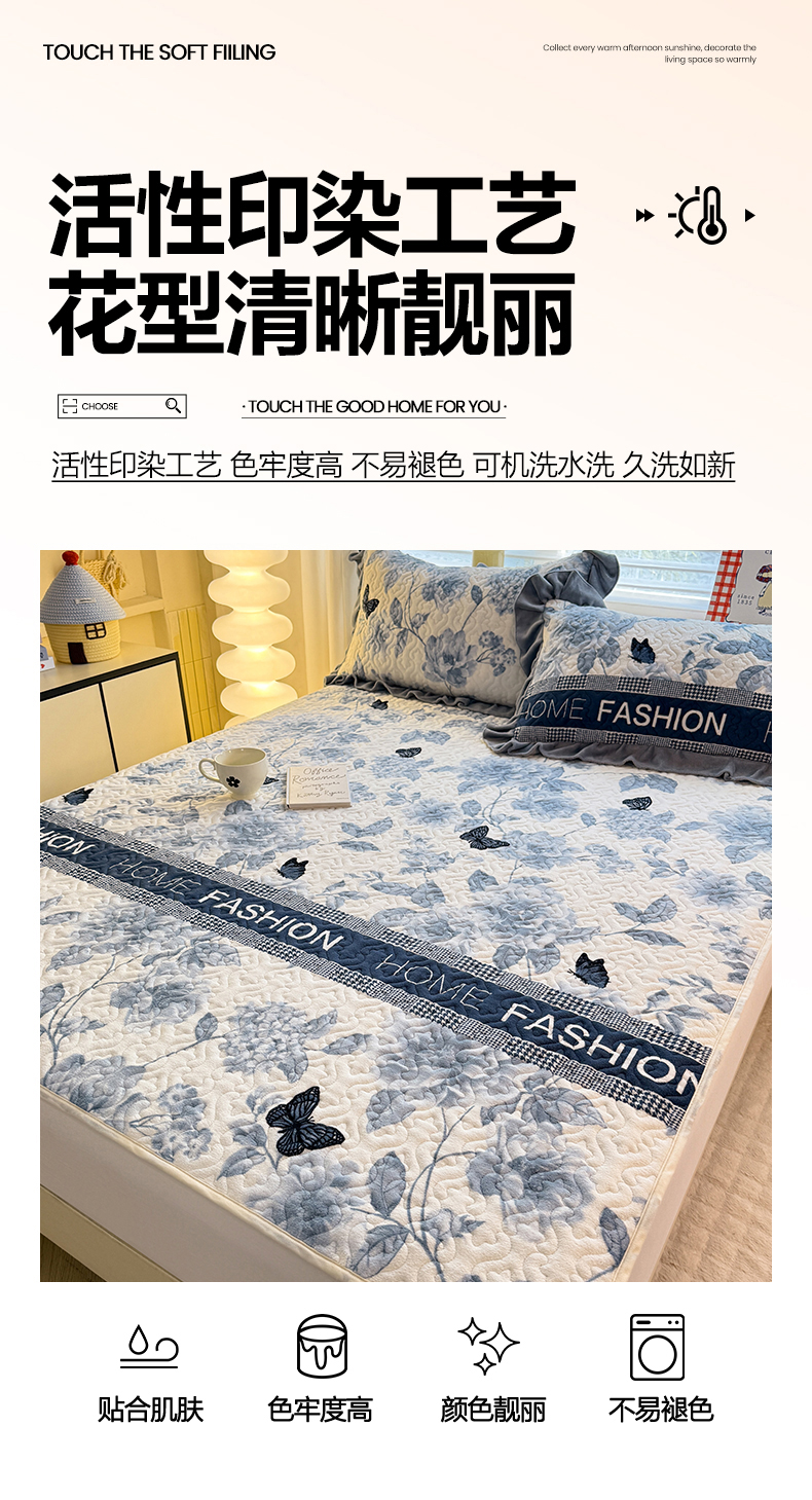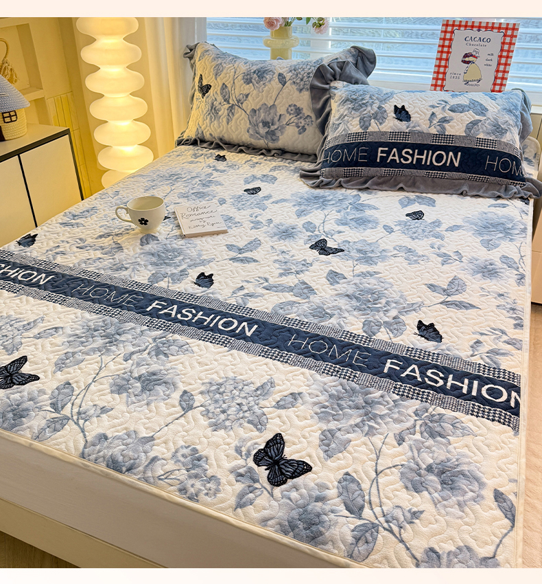美达家纺 2025新款高克重牛奶绒夹棉床垫 梦蝶