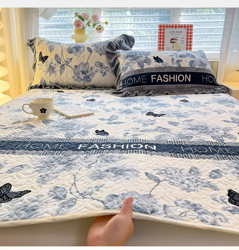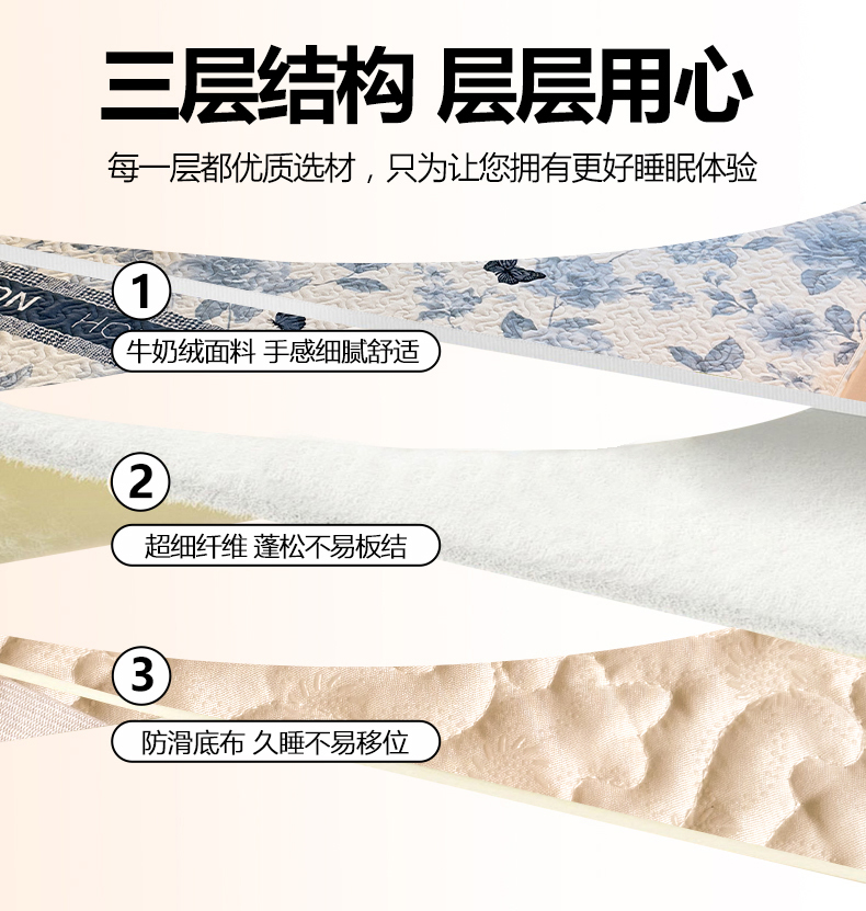 商品名称:美达家纺 2025新款高克重牛奶绒夹棉床垫 梦蝶
