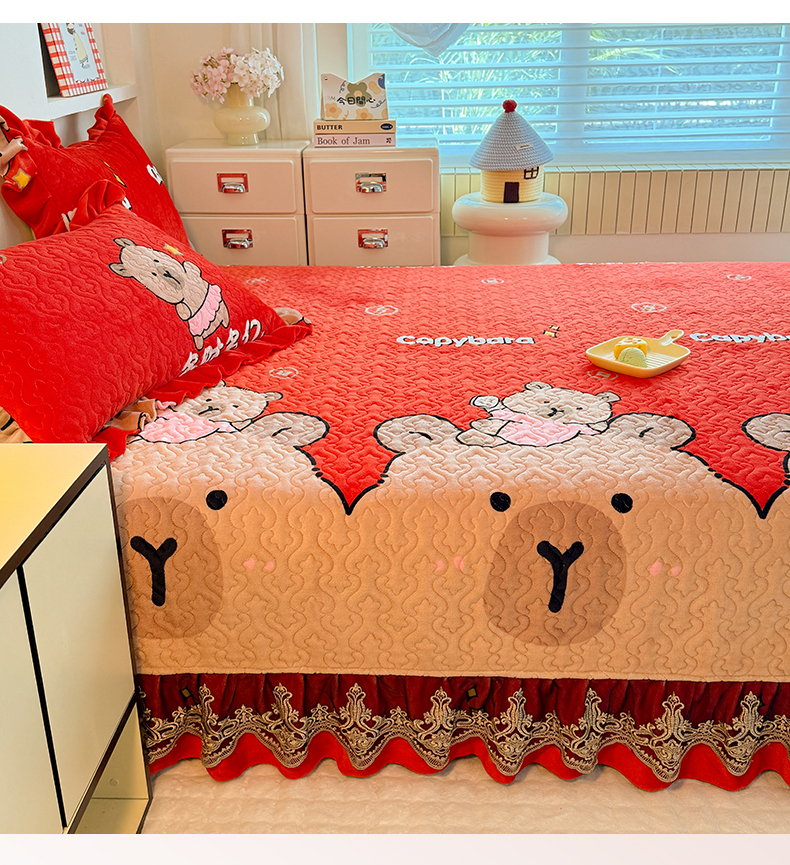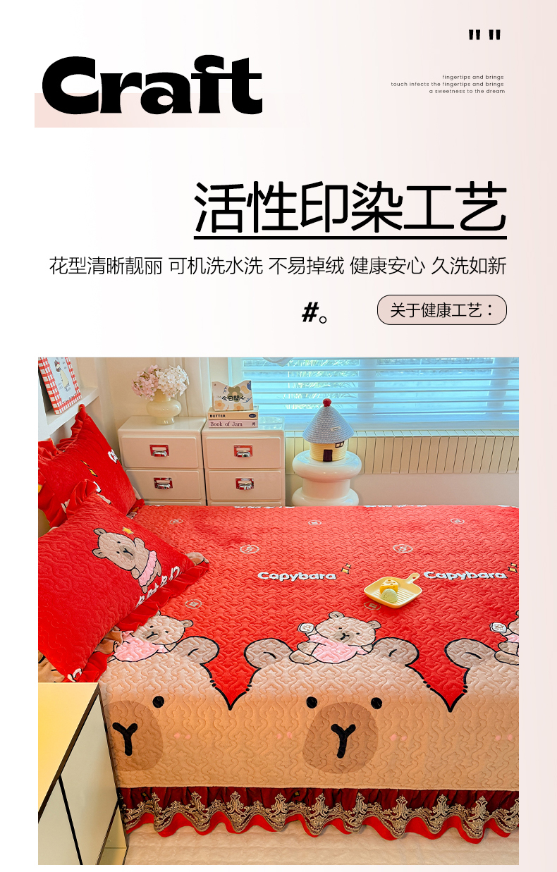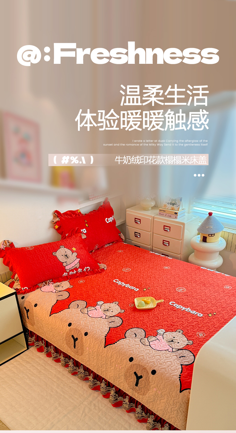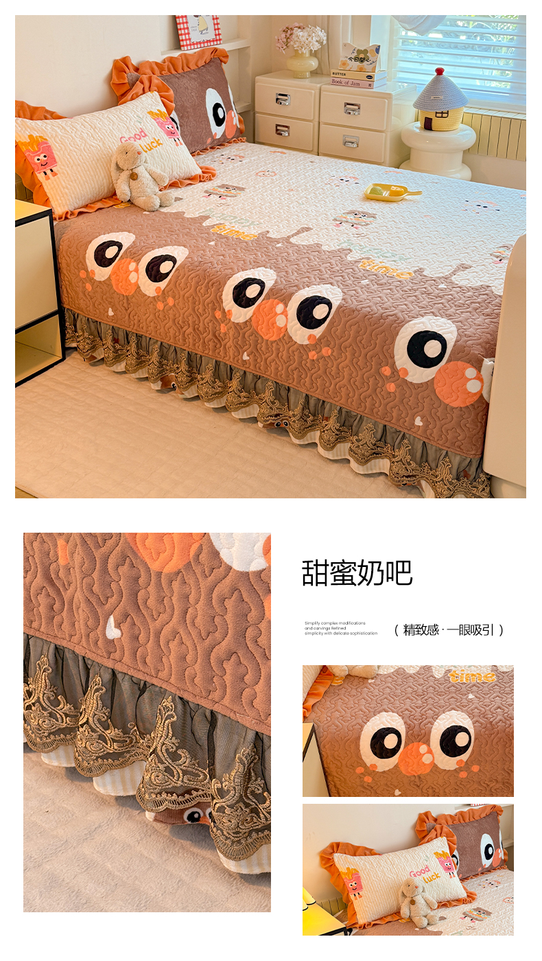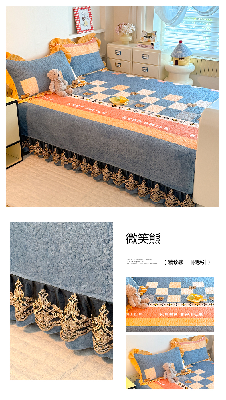 (总)美达家纺 2025新款高克重牛奶绒花边款夹棉床盖三件套,巴拉巴拉,格子萌熊,恐龙星球,梦蝶,时来运转,甜蜜奶吧,微笑熊,针织熊