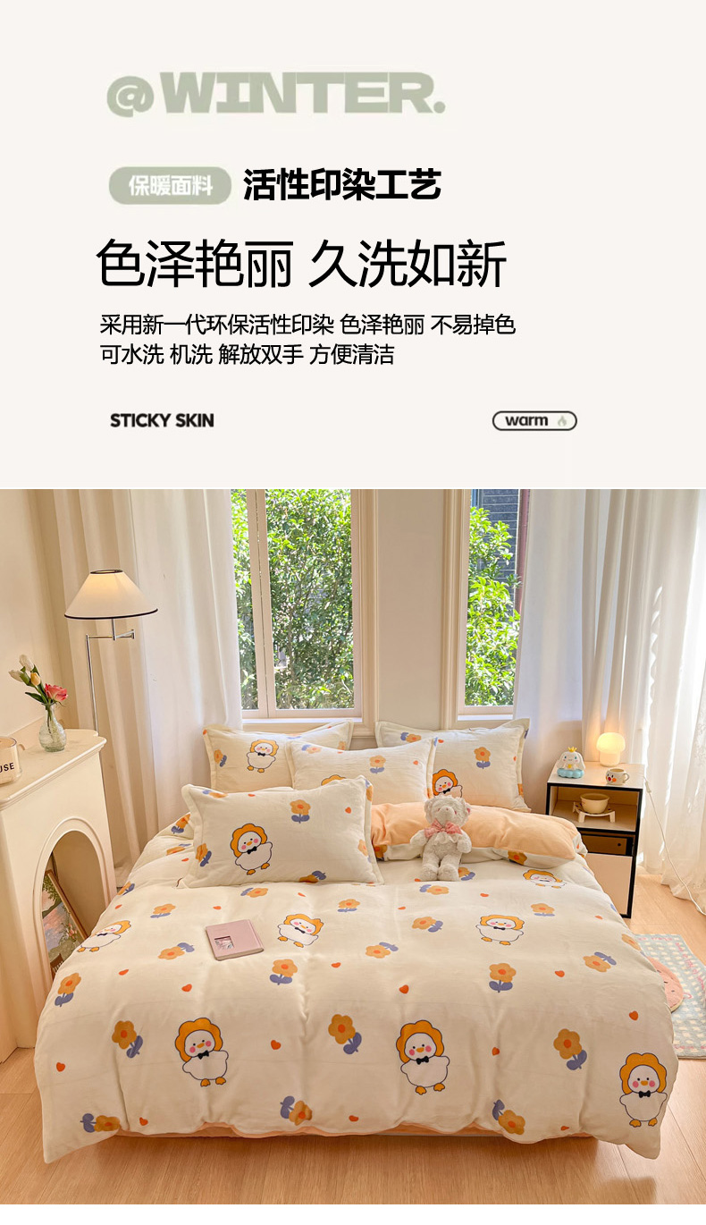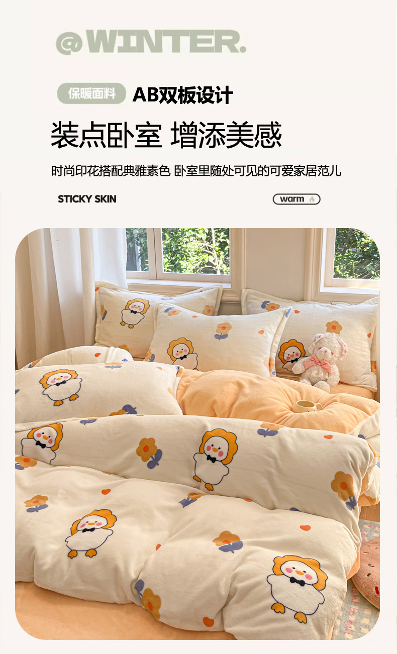当前位置: 91家纺网 > 商品网购 > 床品套件 > 四件套 > 牛奶绒四件套 > 沐慕 2025新款高克重牛奶绒四件套 牛奶绒-萌萌鸭