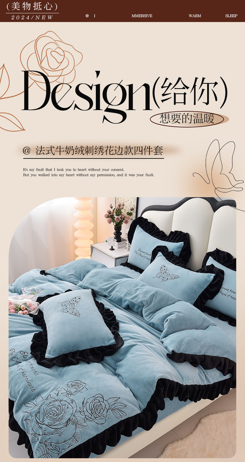(总)炫拼家纺 2025新款亲肤舒适韩版高克重牛奶绒花边四件套-奶盐,奶盐-海的心跳,奶盐-梦里生花,奶盐-觅光里,奶盐-森漫,奶盐一墨韵,奶盐-柚见