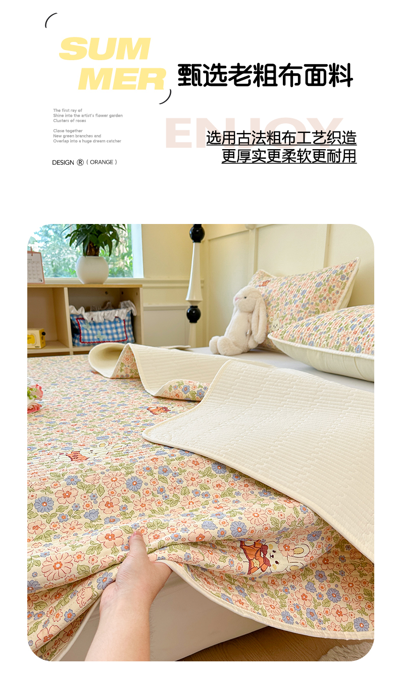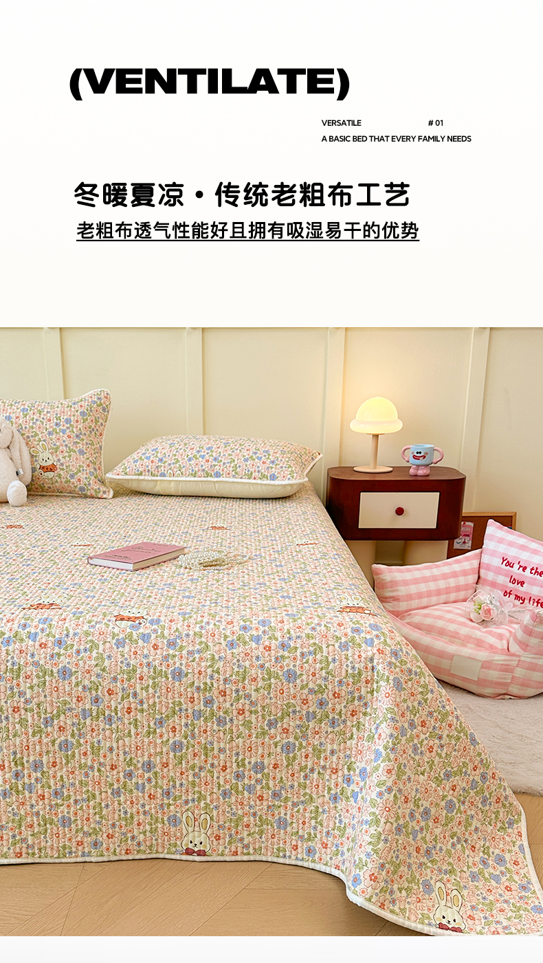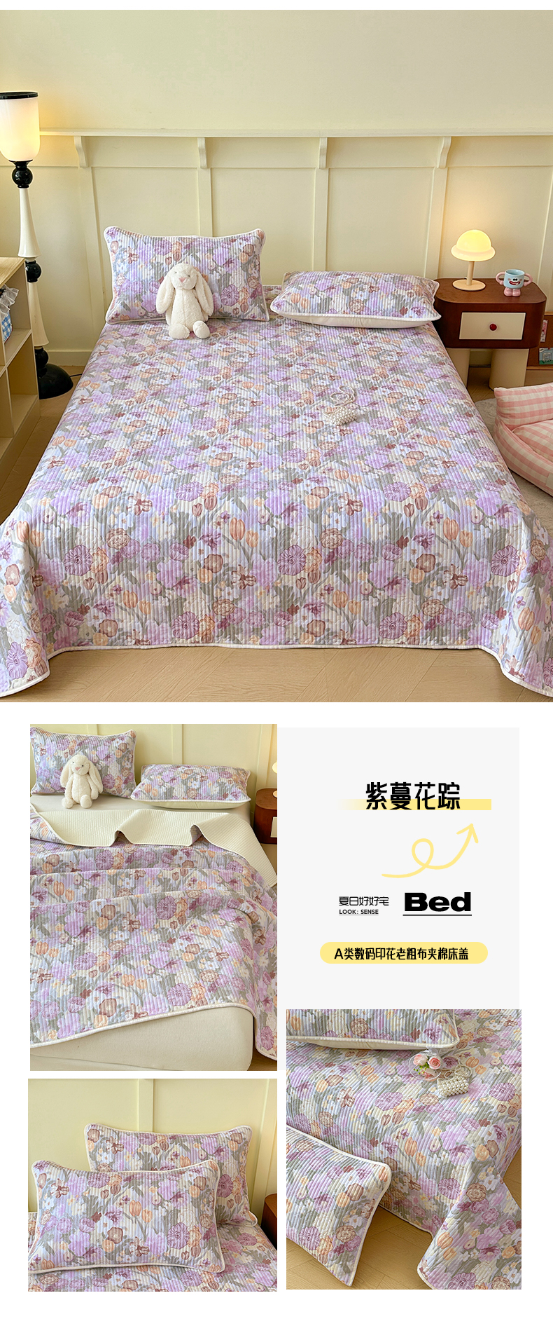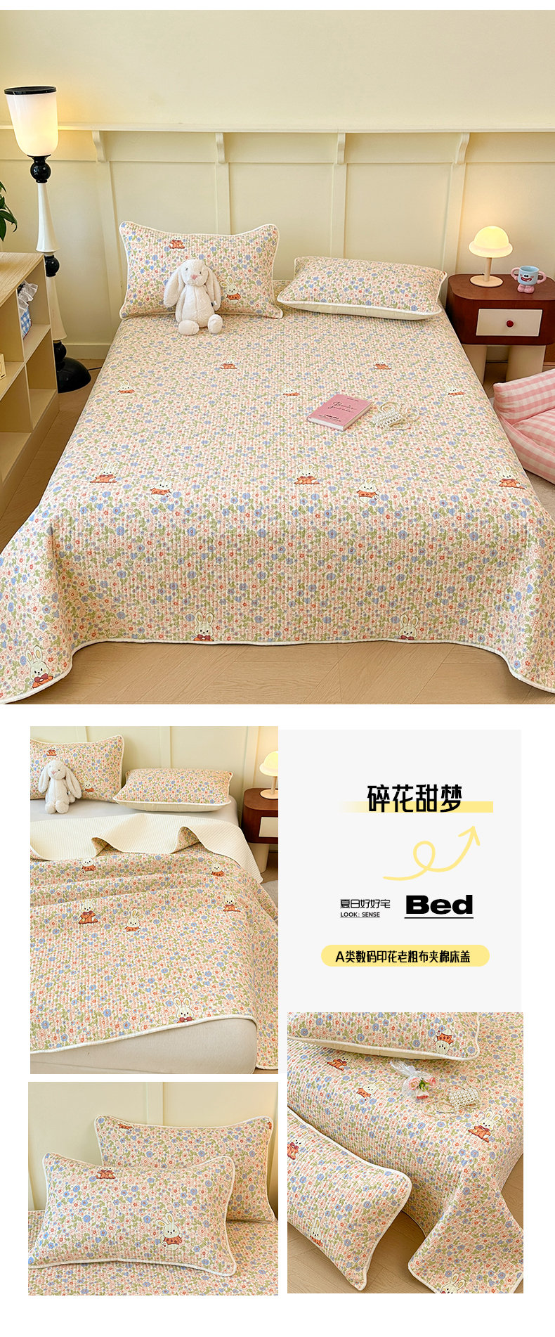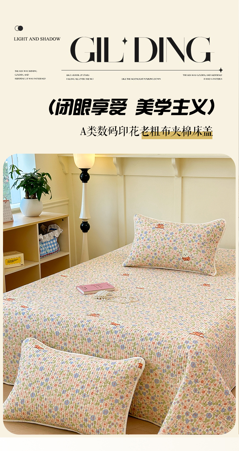 • 91家纺网 家纺一手货源 找家纺 寐居家纺 2025新款A类数码印花老粗布夹棉床盖 碎花甜梦