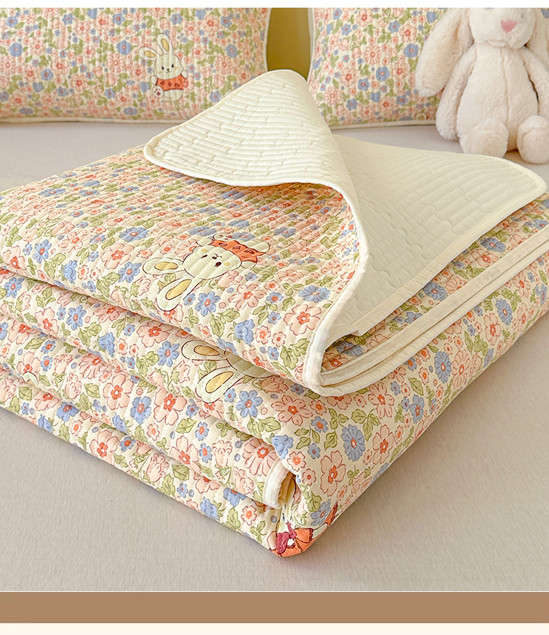寐居家纺 2025新款A类数码印花老粗布夹棉床盖 碎花甜梦