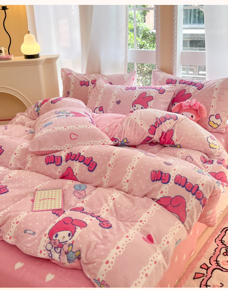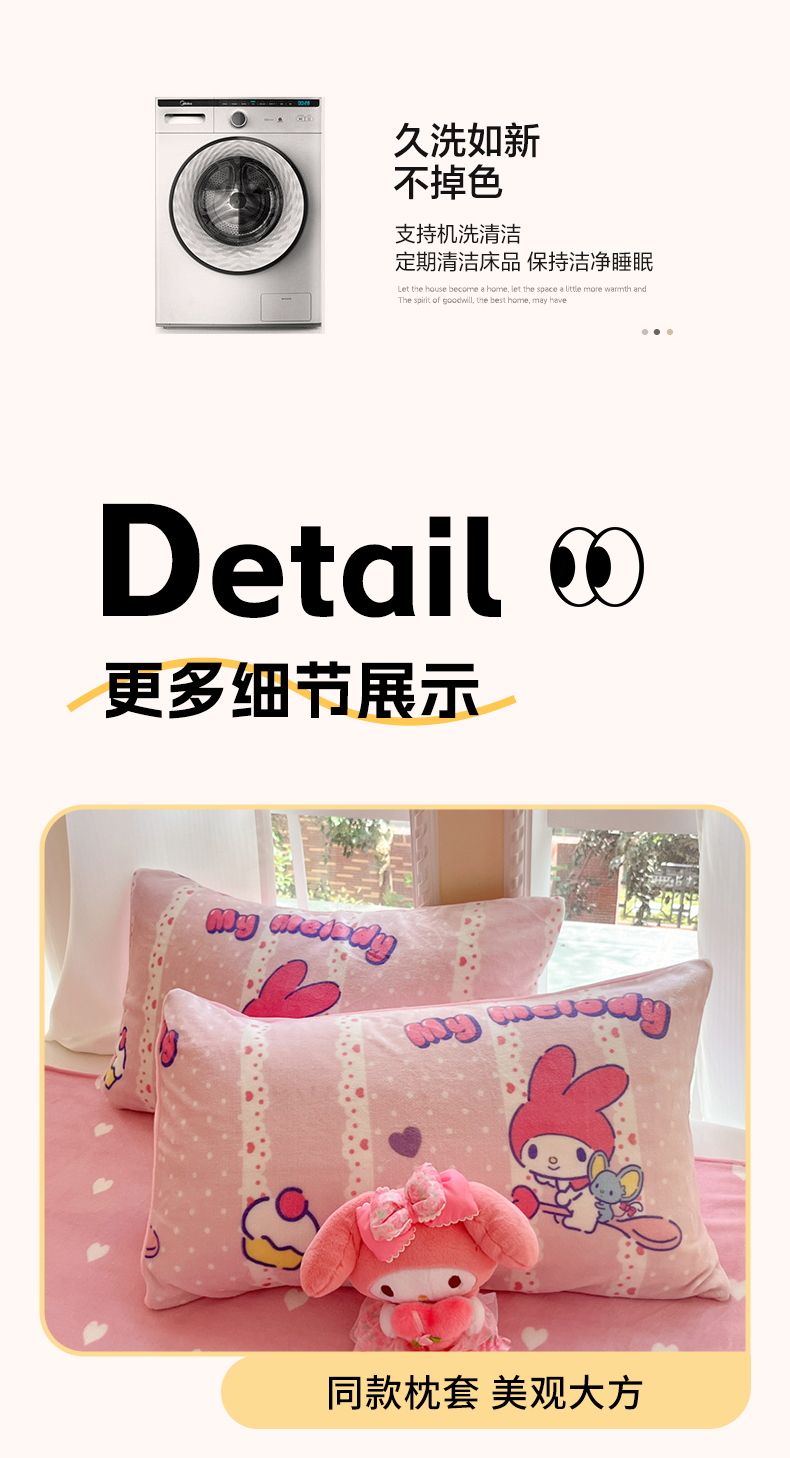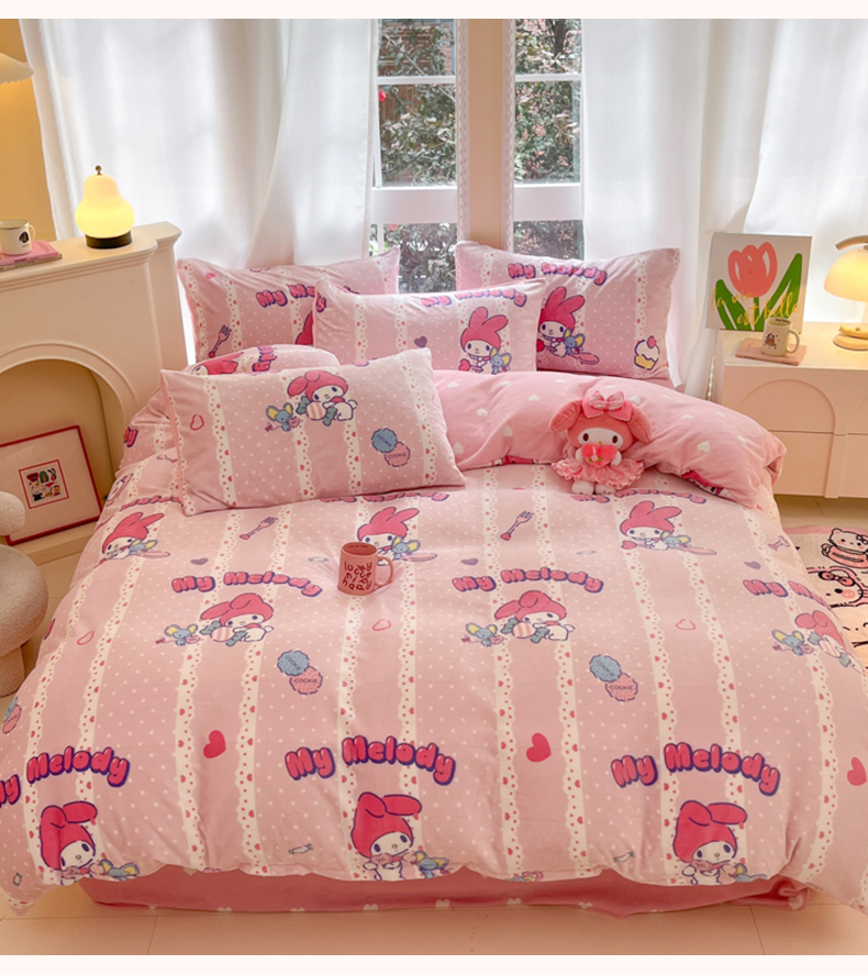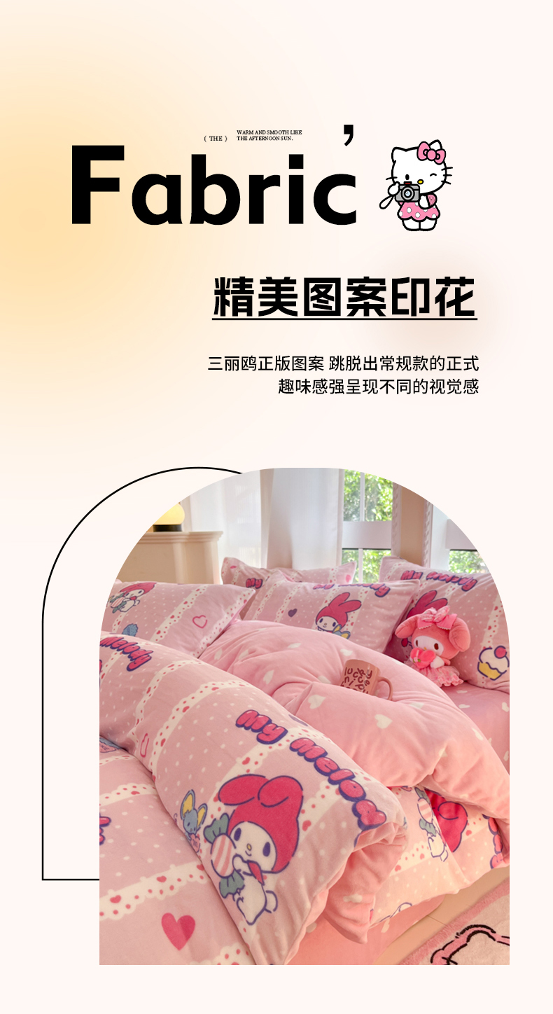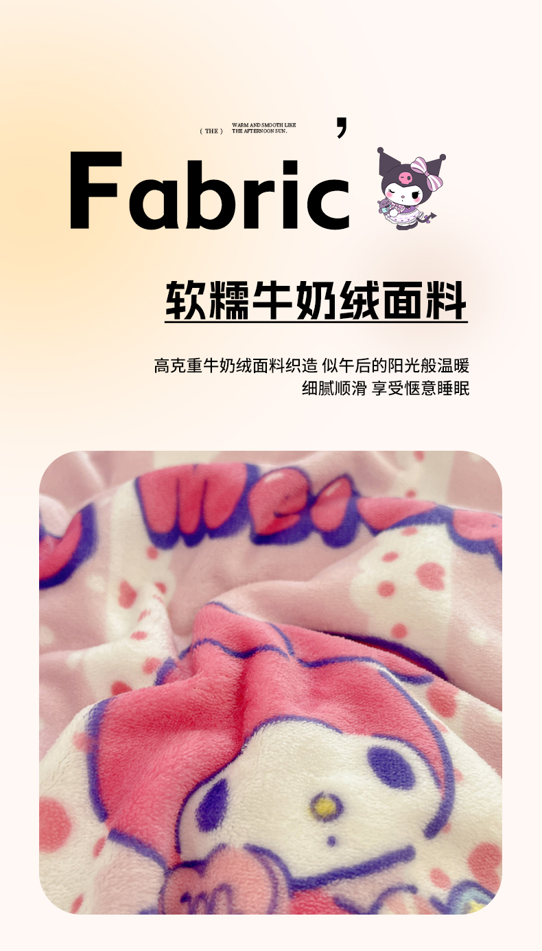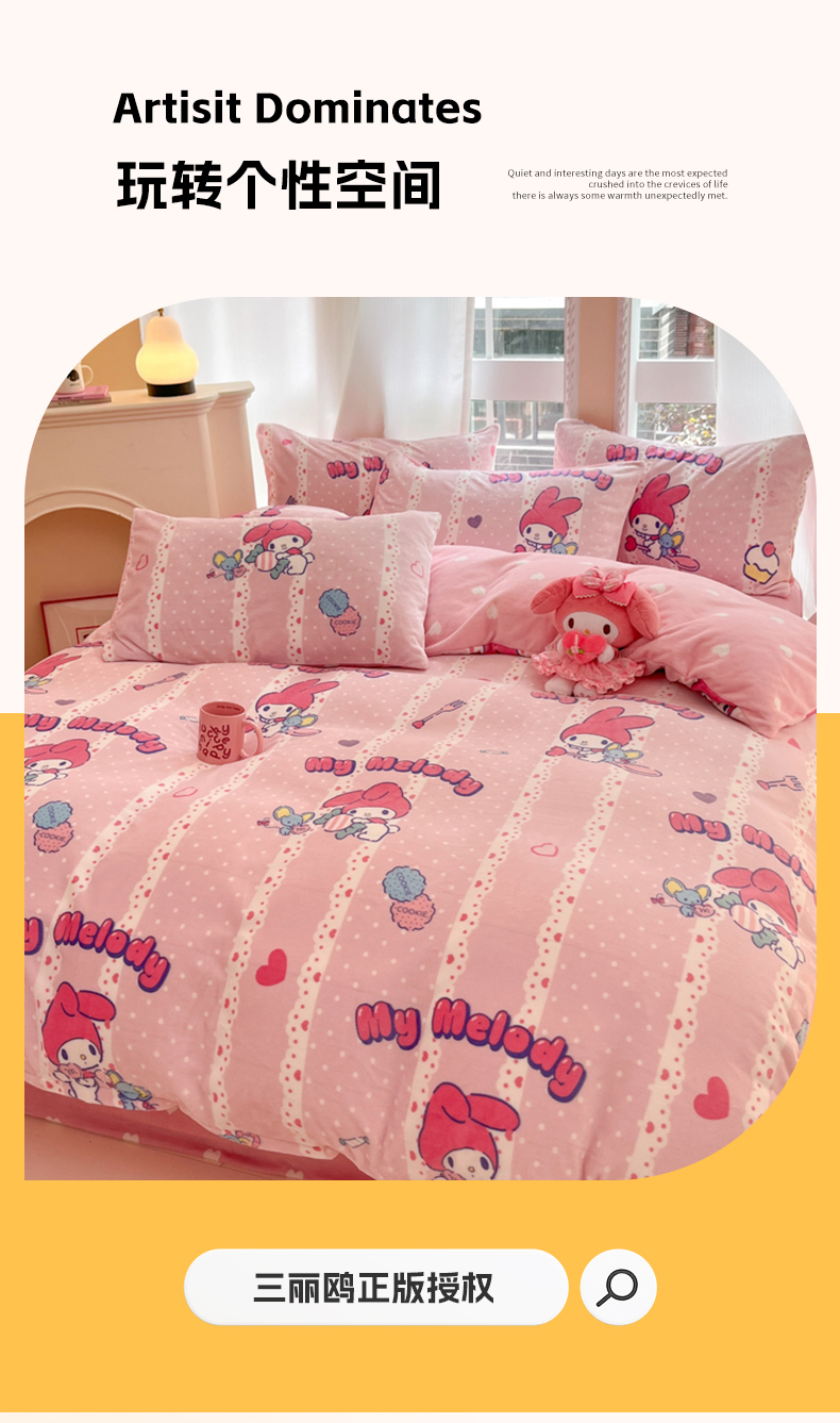当前位置: 91家纺网 > 商品网购 > 床品套件 > 四件套 > 牛奶绒四件套 > 博雅 2025新款三丽鸥正版授权高克重牛奶绒小版四件套提供买家秀 牛奶绒小版-贪吃美乐蒂专版花型