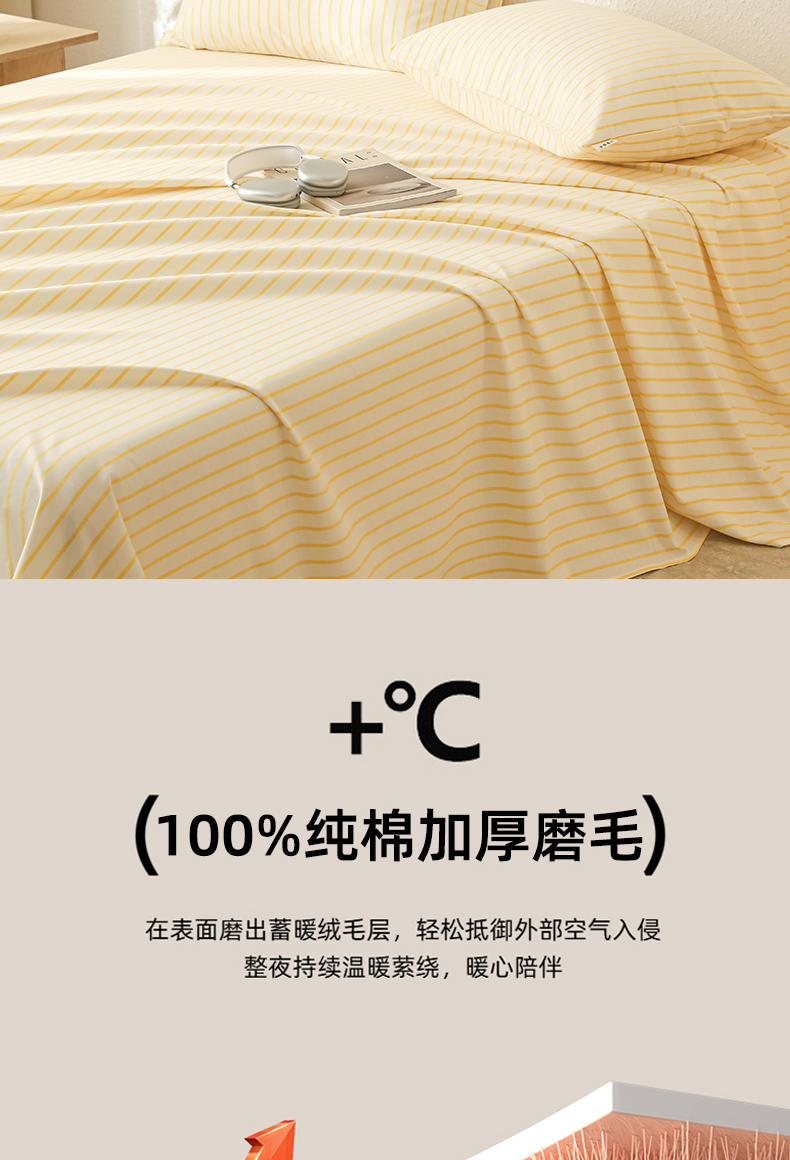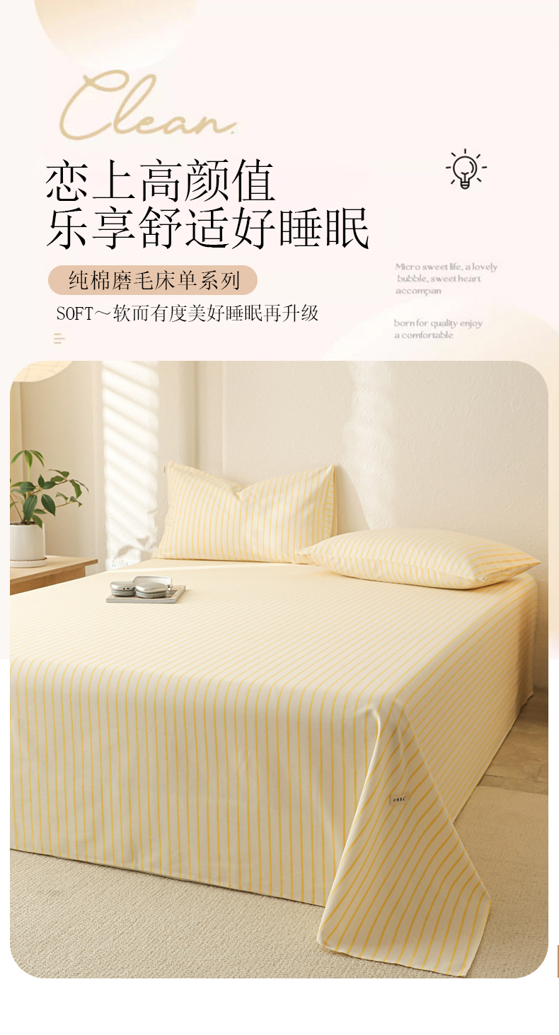 简宜家居(朝初家纺) 2025新款纯棉全棉磨毛单床单系列 线素-黄