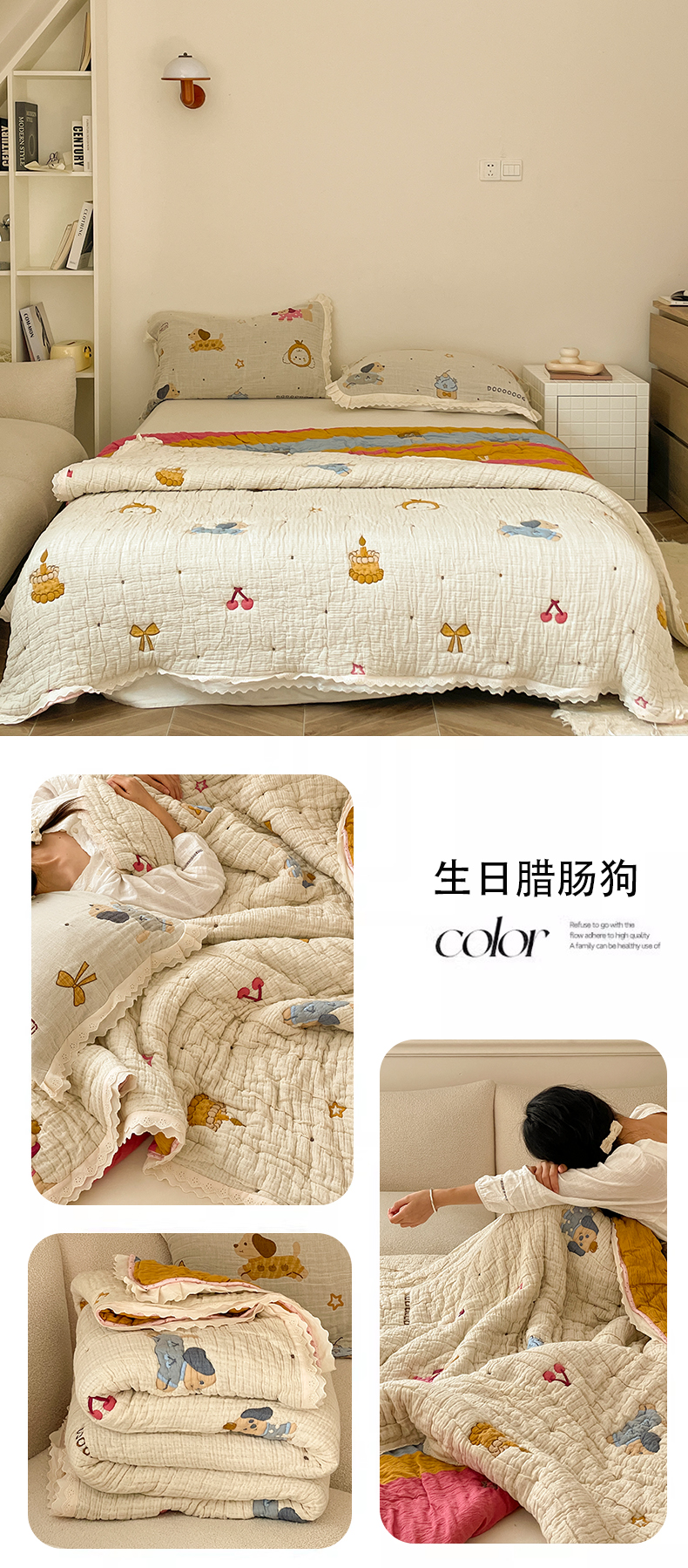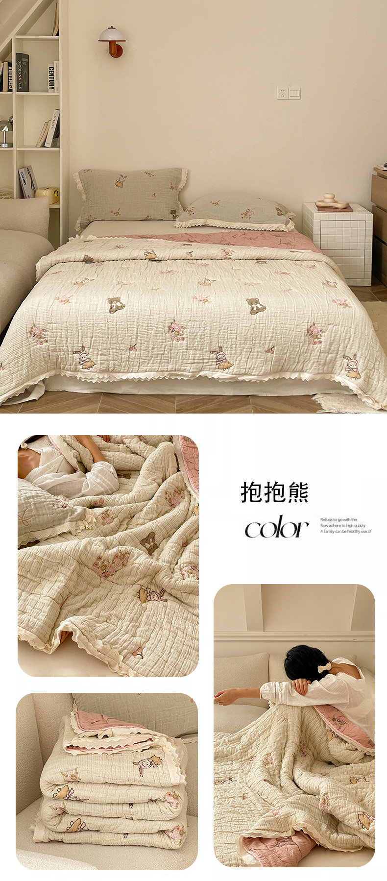 (总)麻依 2025新款十层纱布棉花糖春秋被被子泡芙被,抱抱熊,点点-白,点点-灰,花影-粉,花影-米,墨心,奶油草莓,帕帕熊,牵手小熊,生日腊肠狗,甜甜圈小熊,小蝴蝶结,小南瓜,小柿子,樱桃香