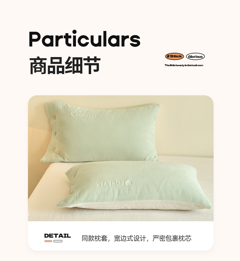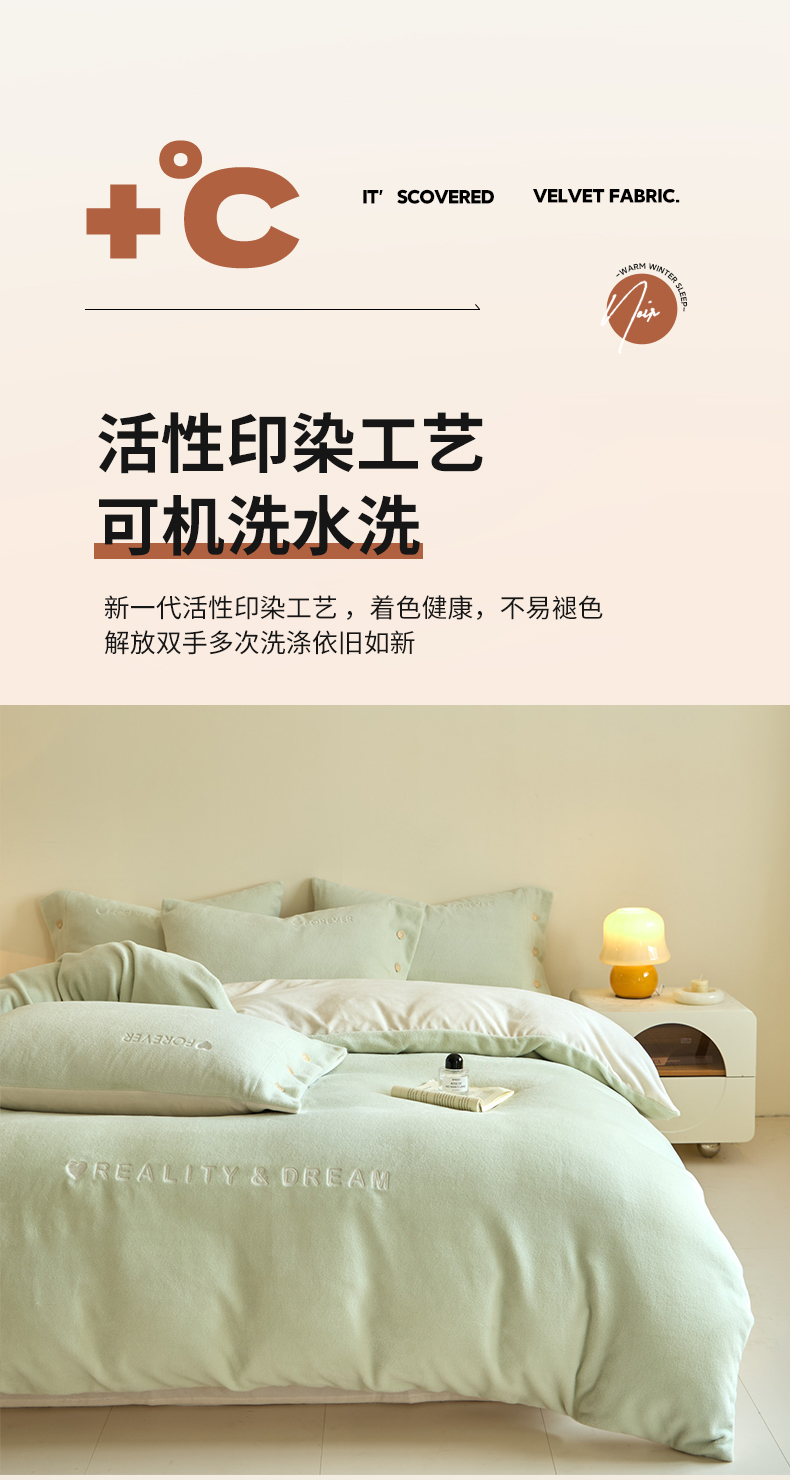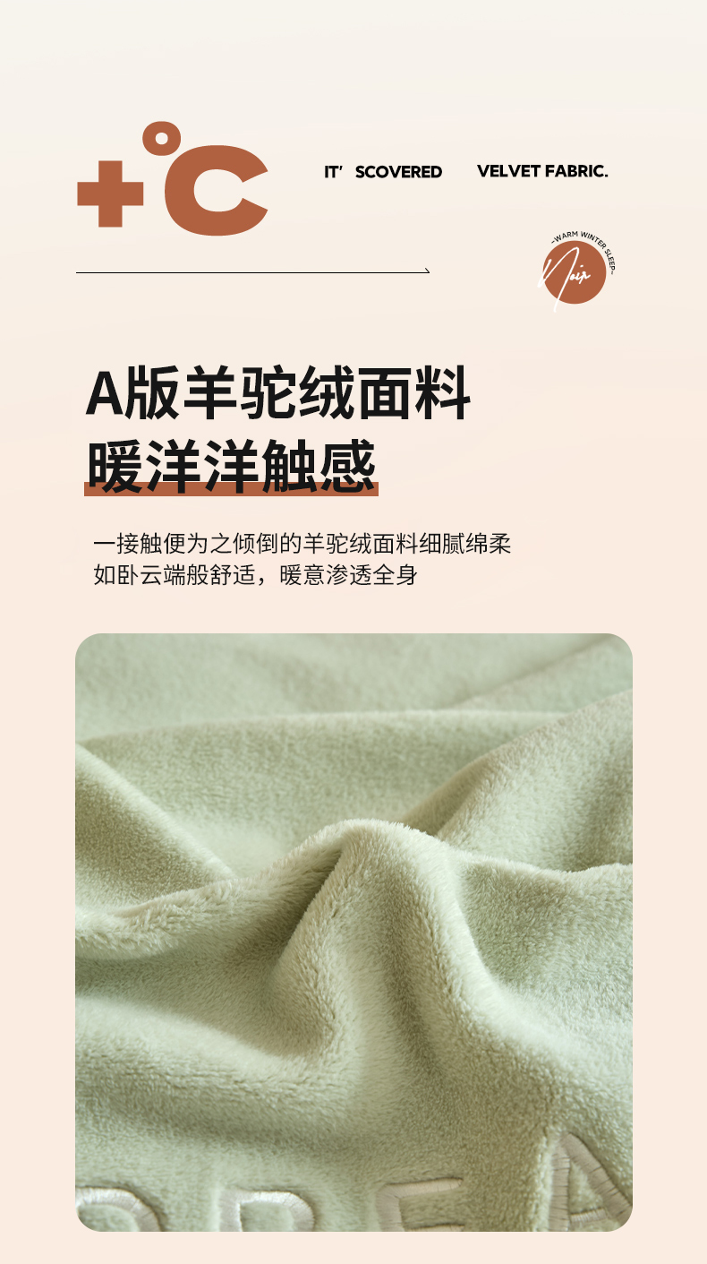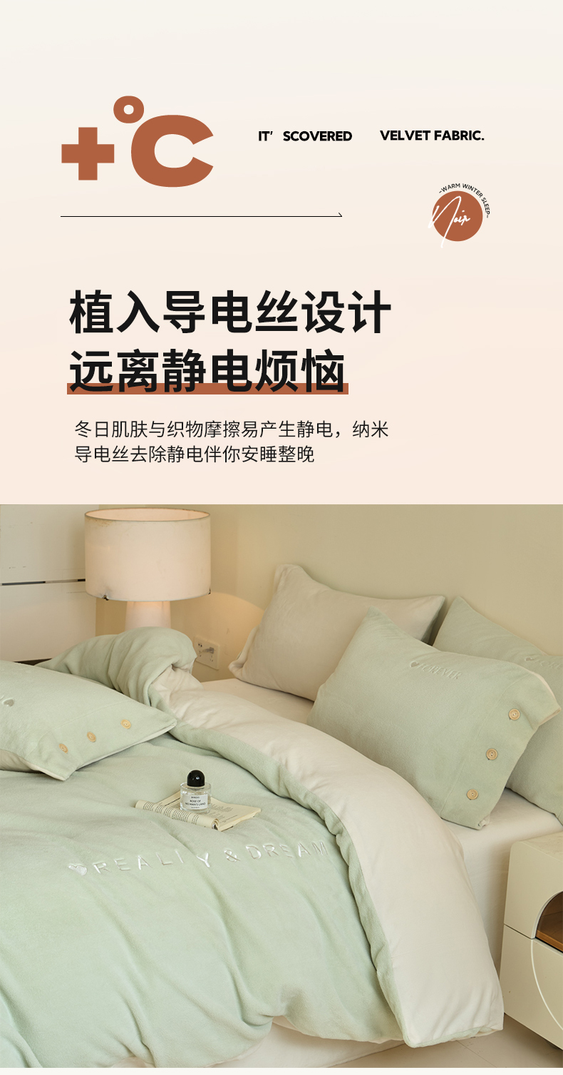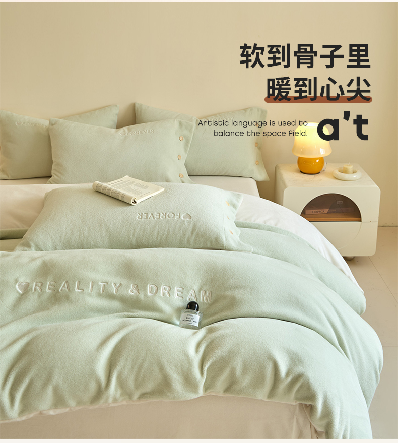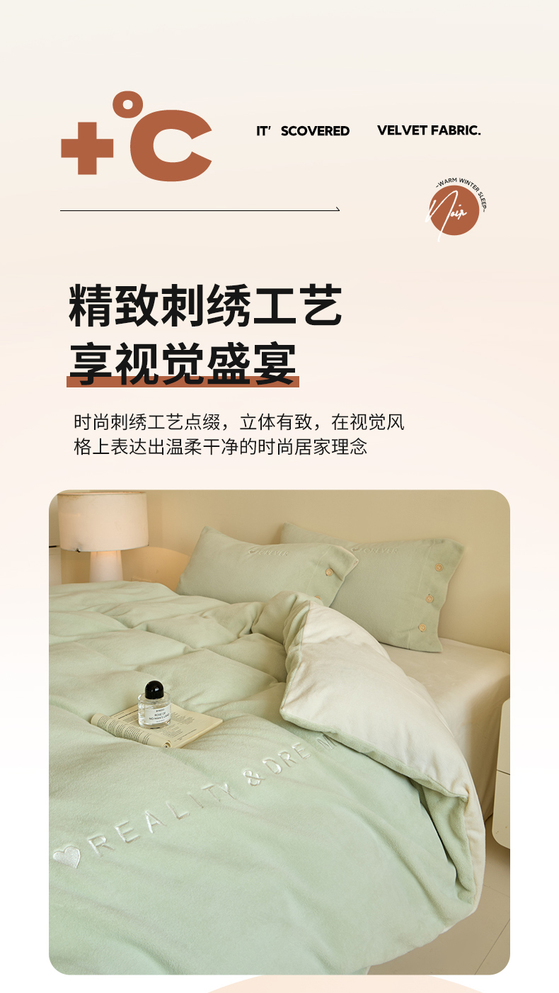 商品名称:吾诺家居 2025新款刺绣款羊驼绒云朵系列四件套 浅绿-奶昔白