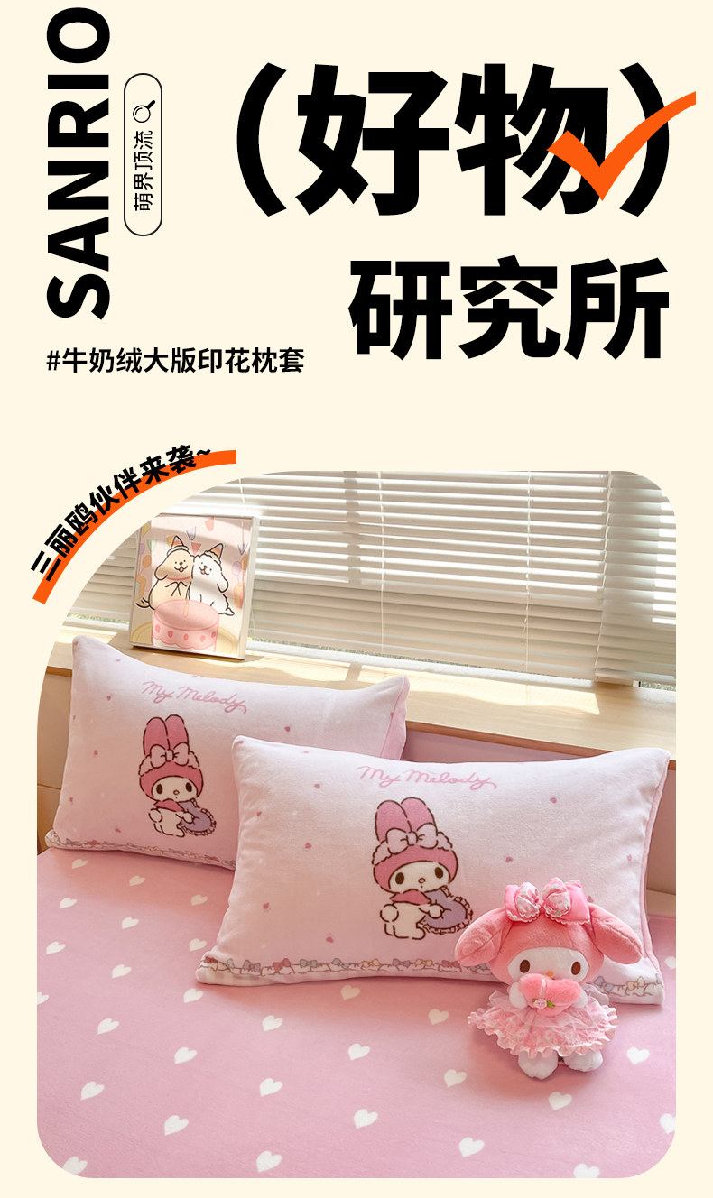 博雅 2025新款三丽欧大板牛奶绒印花单枕套 牛奶绒大版-木马美乐蒂