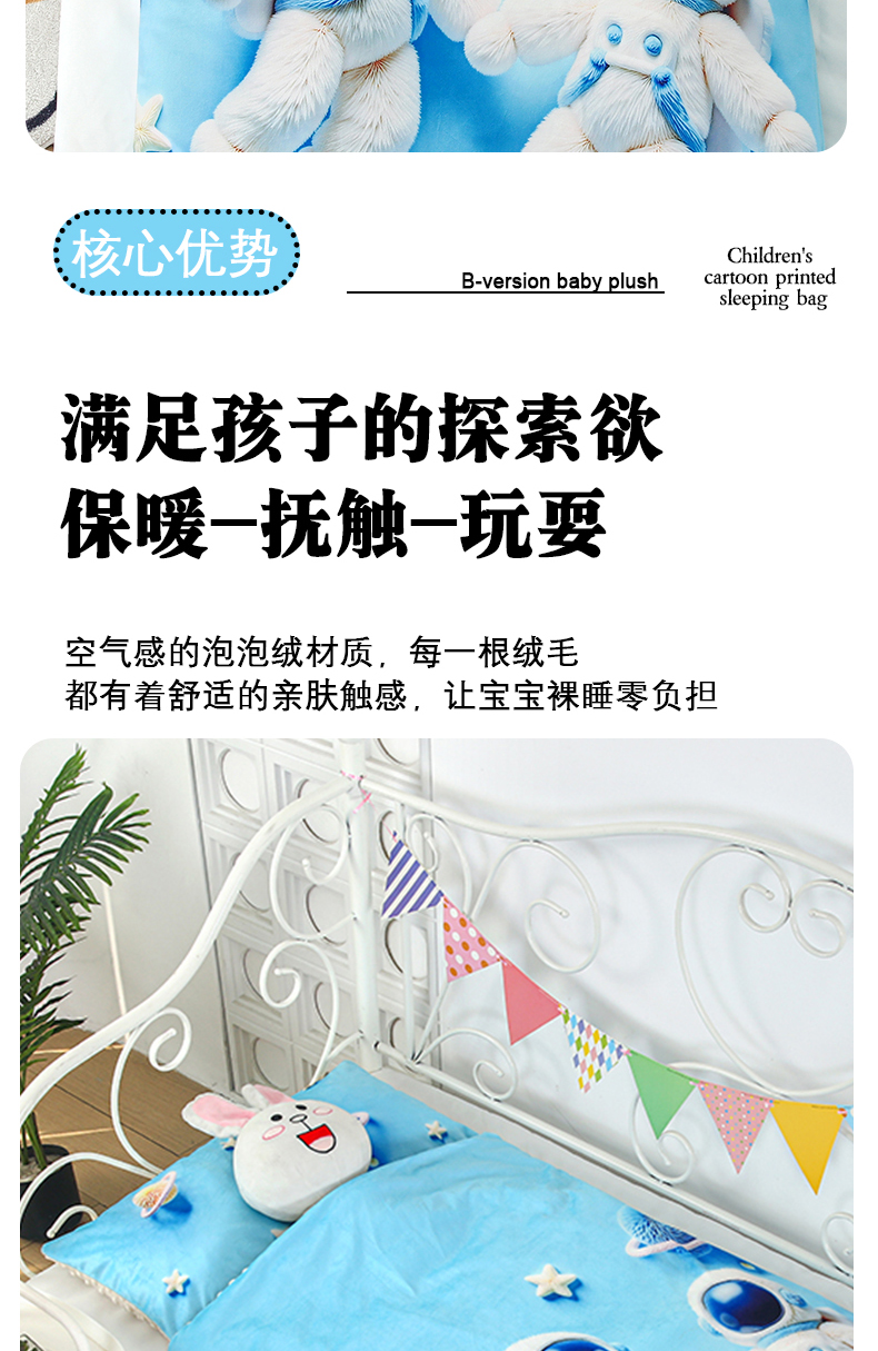 (总)沁童儿童用品店 2025新款儿童3D立体印花A版宝宝绒+B版豆豆绒儿童睡袋,太空宝宝,彩虹马,彩色小熊,可爱猫咪,可爱小熊,蘑菇娃娃,企鹅宝宝,水果娃娃,云朵汽车,太空宝宝,企鹅宝宝,云朵汽车