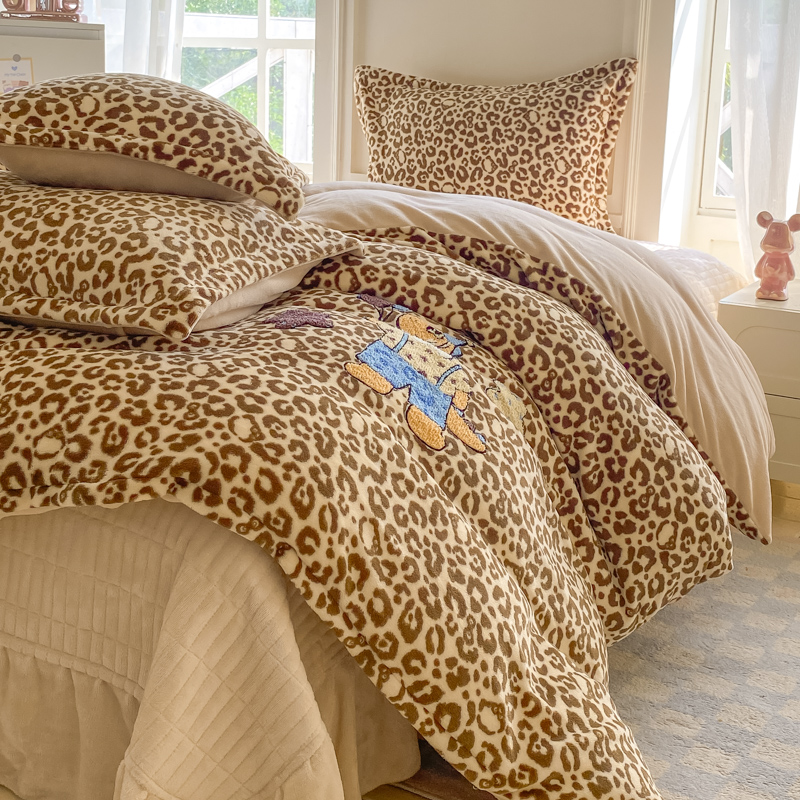 梦可莱家居 2025新款牛奶绒毛巾绣加厚床盖四件套 小粉象